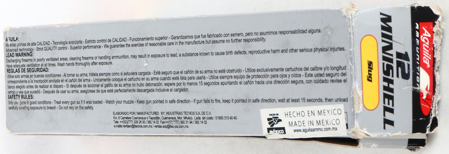 | Aguila, MINISHELL, 12ga., 1pc., Full, shot size Slug. Grade: Ex...