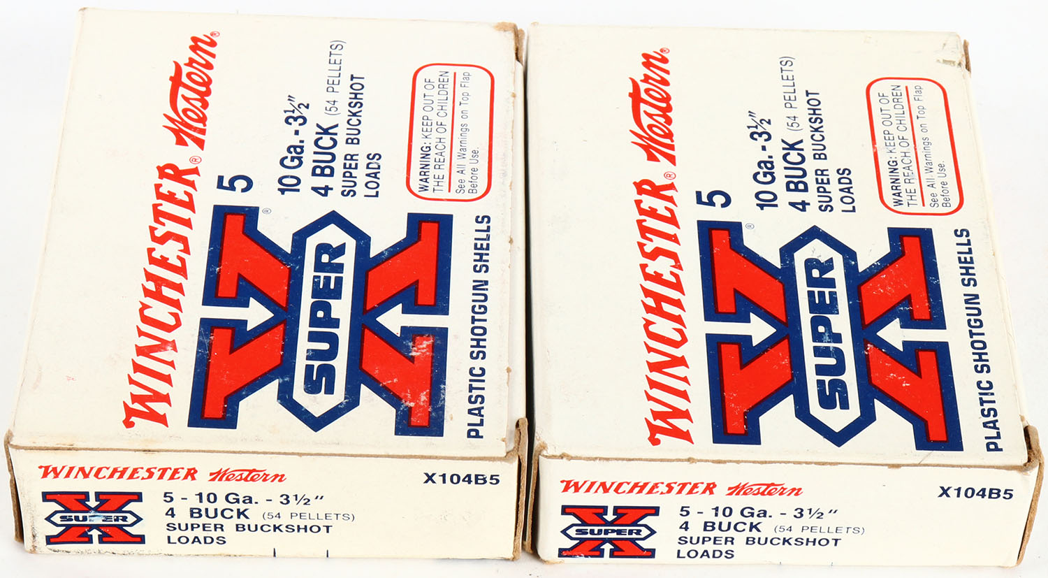 Lot of 2 Winchester, 12ga., 1pc., Appears Full, shot size 4, multi-colored box. Grade: Excellent - Value: 10 to 30