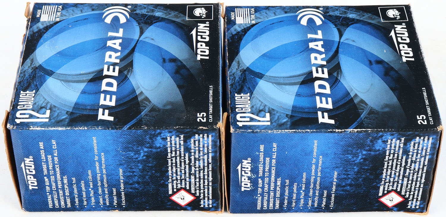 Lot of 2 Federal, 12ga., 1pc., Appears full, shot size 8, multi-colored box. Grade: Excellent - Value: 10 to 40
