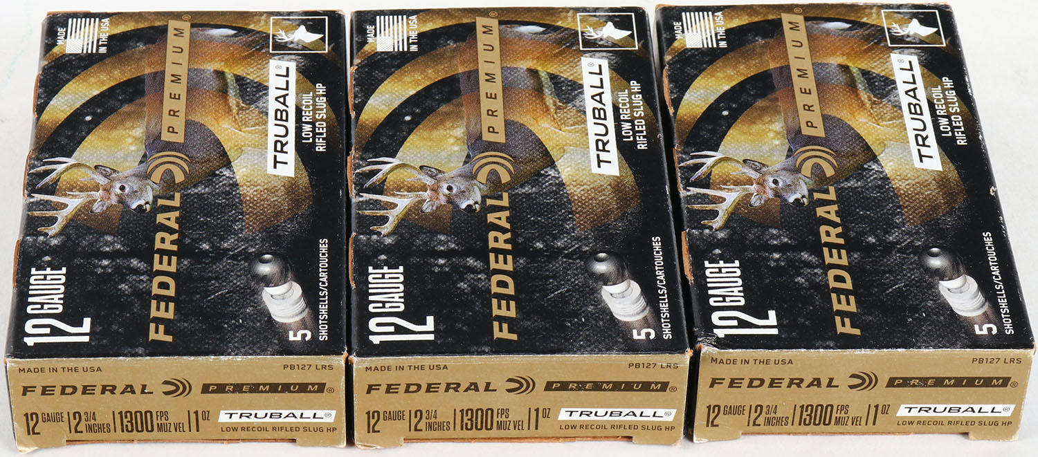 Lot of 3 Federal, 12ga., 1pc., Appears full, shot size Rifled Slug TRUBALL, multi-colored box. Grade: Excellent - Value: 10 to 40