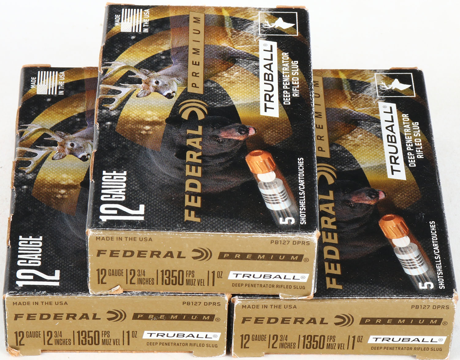 Lot of 3 Federal, 12ga., 1pc., Appears full, shot size Rifled Slug TRUBALL, multi-colored box. Grade: Excellent - Value: 10 to 40