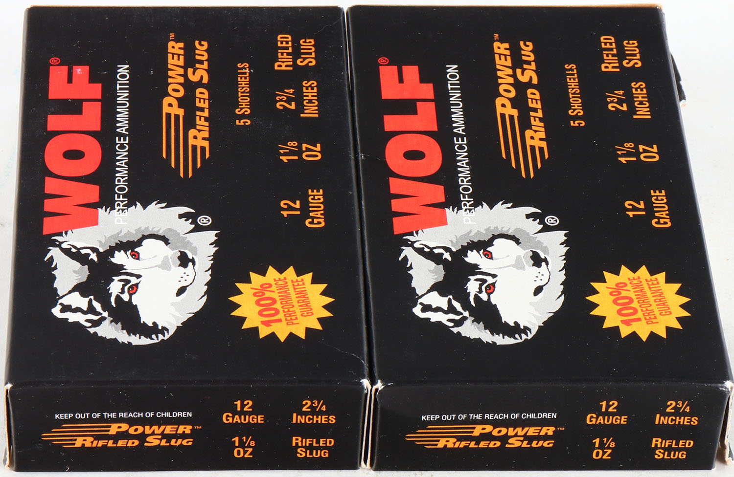| Lot of 2 WOLF, 12ga., 1pc., Full, shot size Rifled Slug, multi-c...