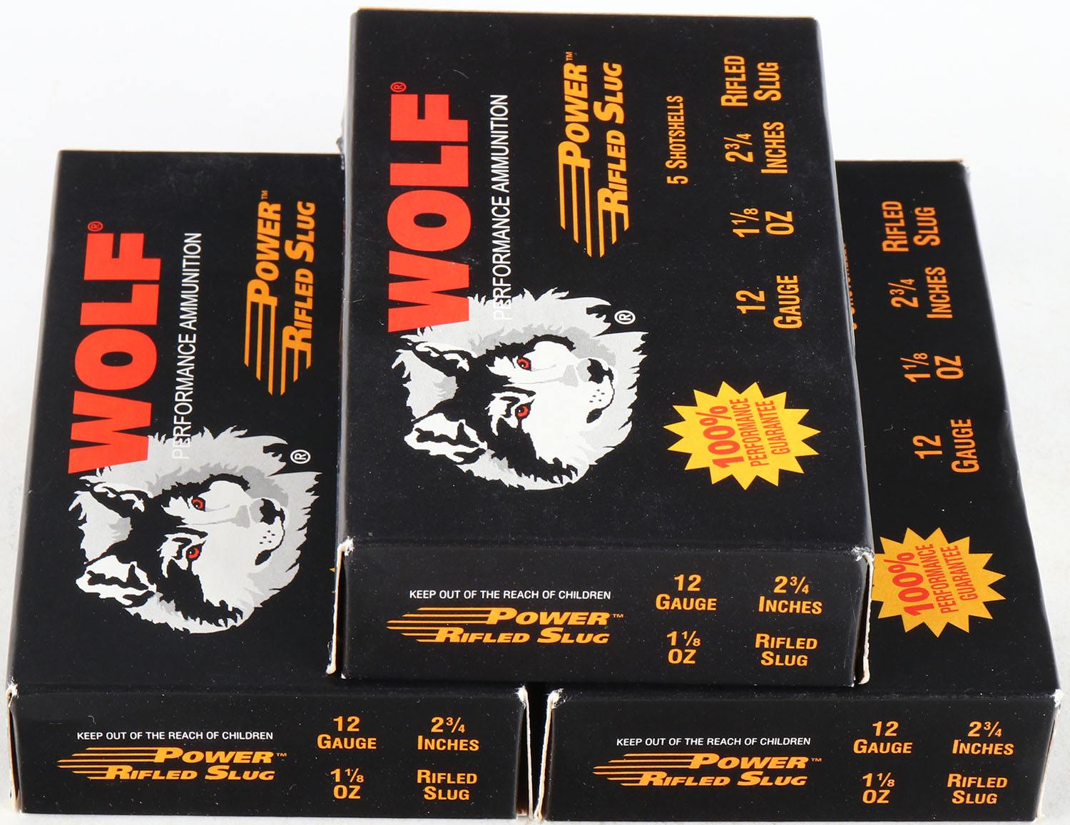 | Lot of 3 WOLF, 12ga., 1pc., Full, shot size Rifled Slug, multi-c...