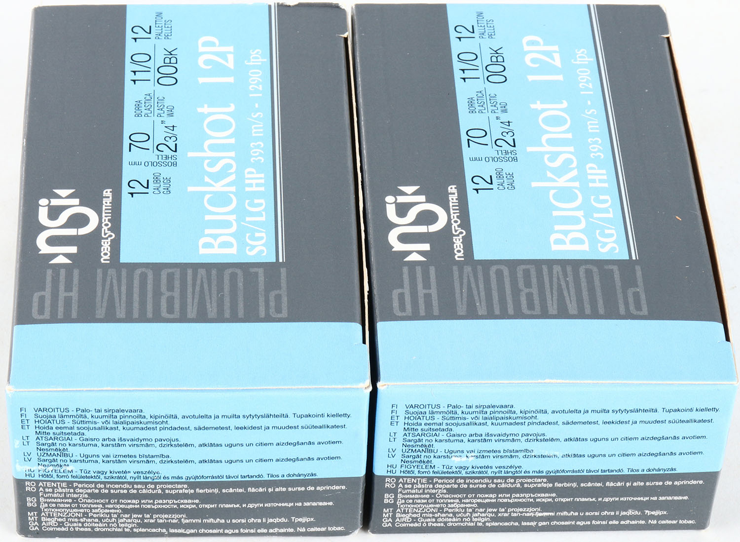 Lot of 2 NSI, 12ga., 1pc., Full, shot size buckshot, multi-colored box. Grade: MINT - Value: 10 to 30