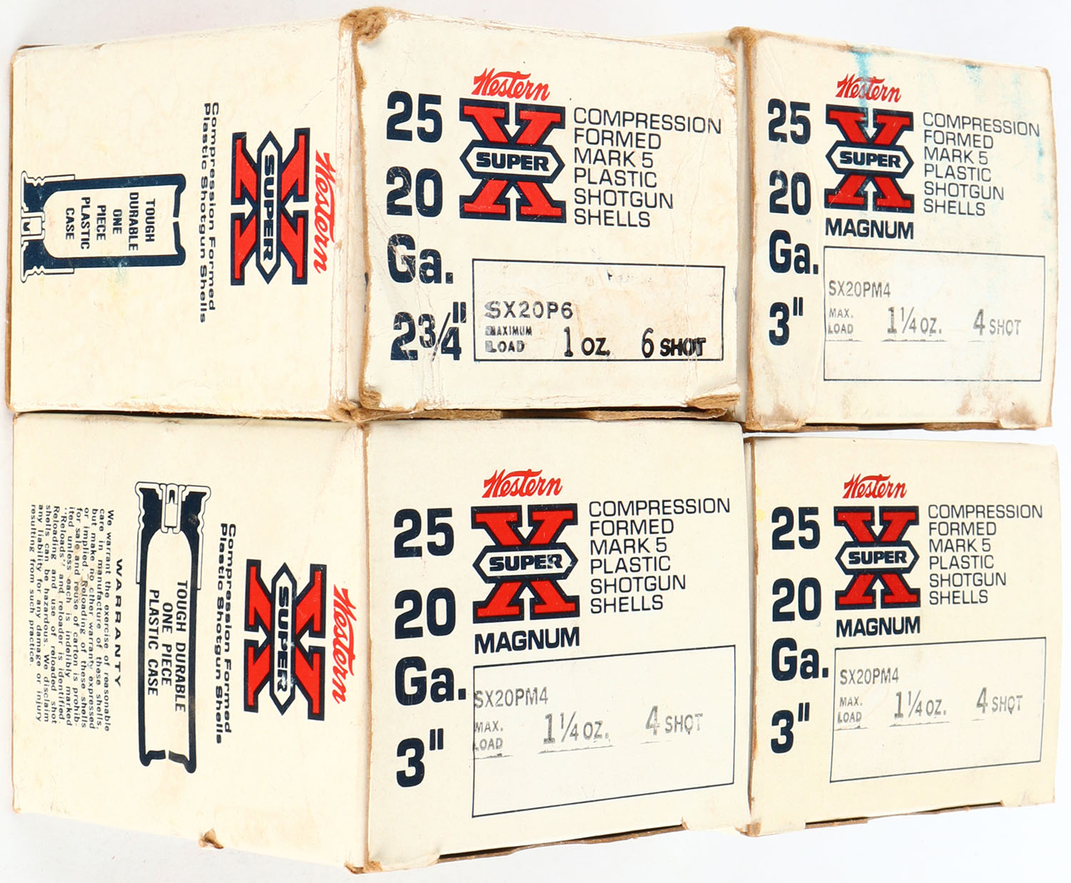 Lot of 4, Western, 20ga., Appears Full, Shotshell Boxes. Grade: Very Good ++ - Value: 10 to 60