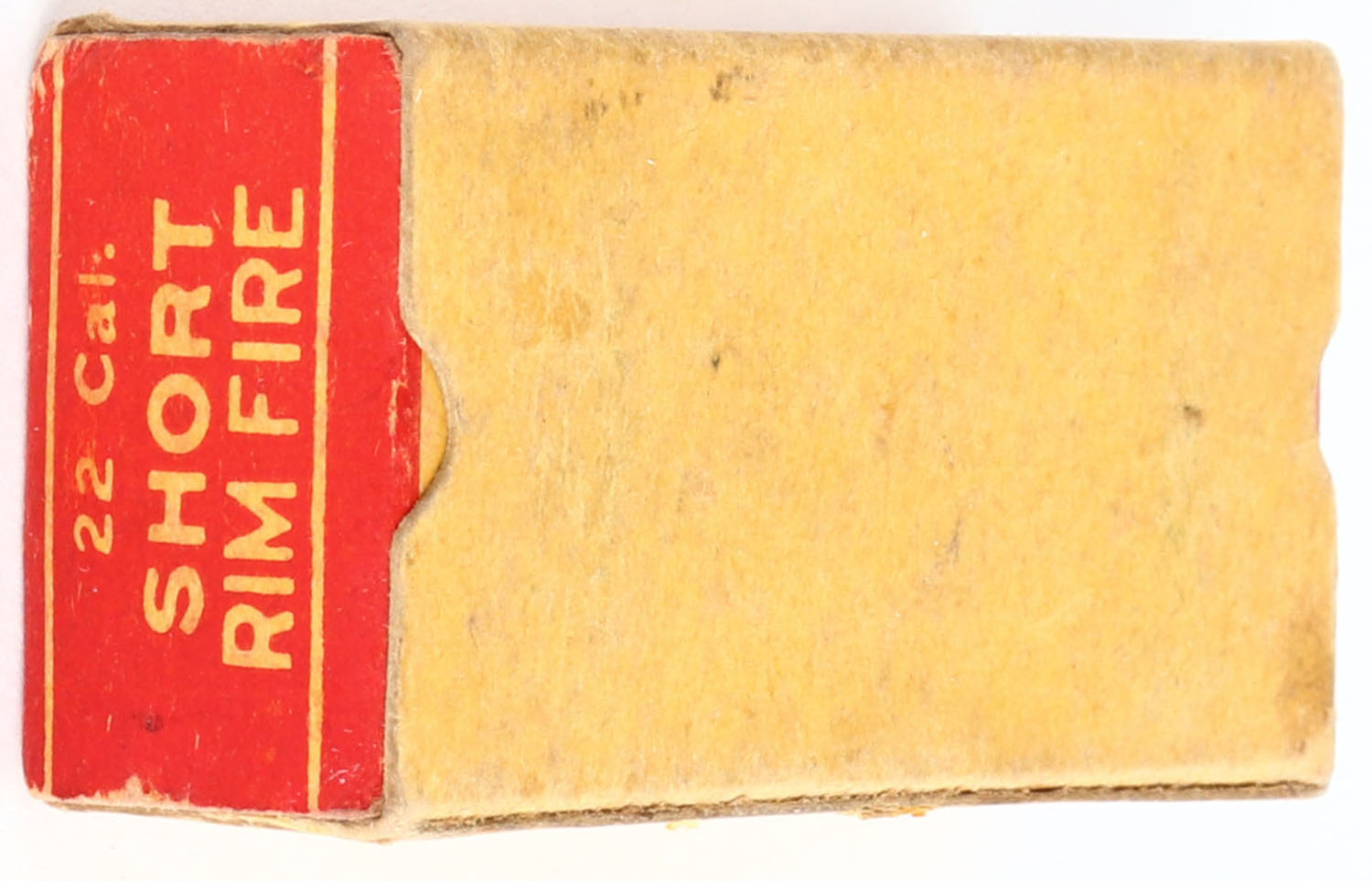 Meriden, Metallic Cartridges, .22 Short, RHWeb: MER-1 S-7a, Full, 1pc. Red & yellow box, box is solid with very good color, some edge & corner wear, end flaps are solid, ammo is very good to excellent. Grade: Very Good ++ - Value: 100 to 500