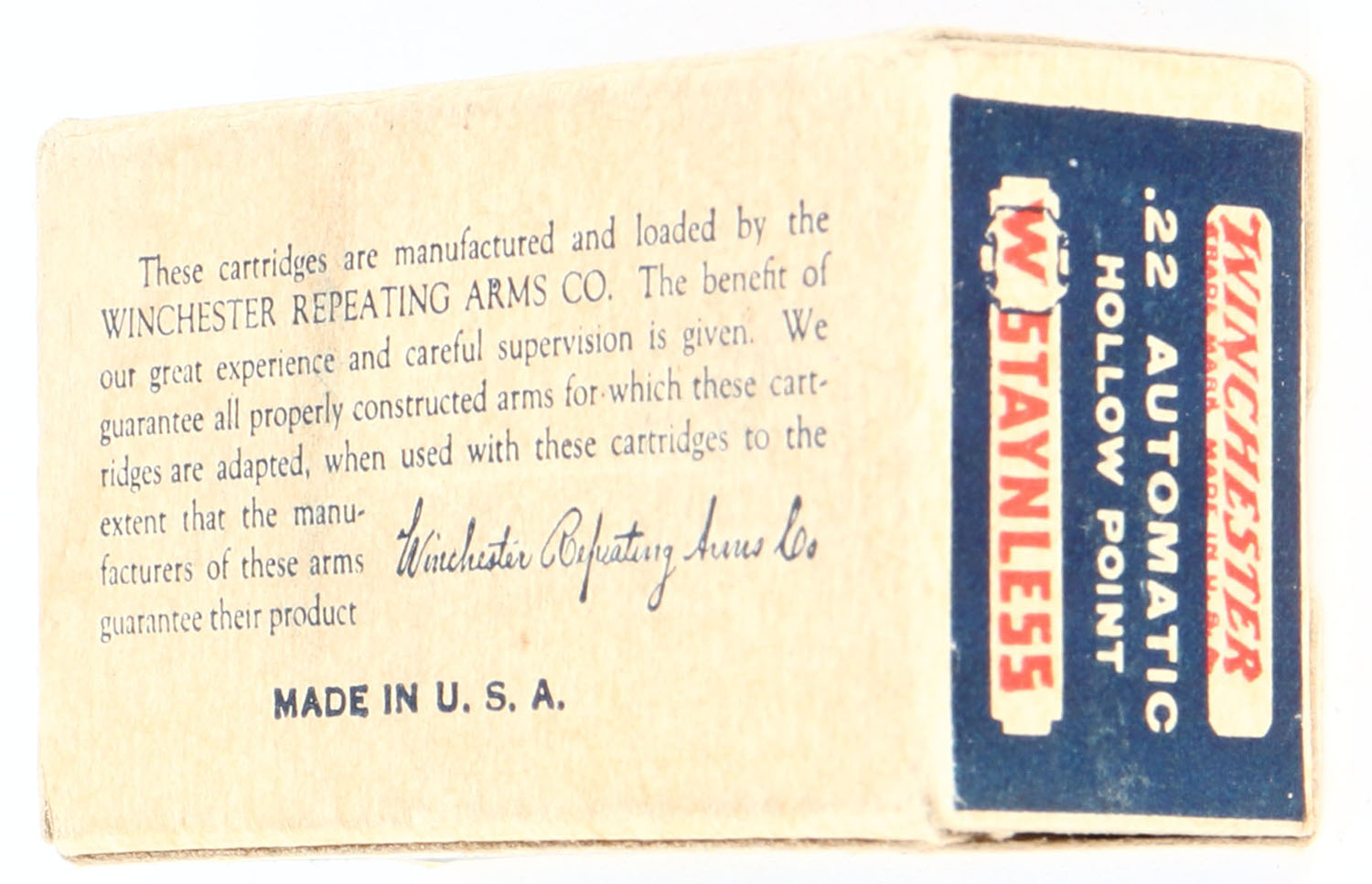 | Winchester, Kopper Klad Bullet, .22 Auto. Hollow Point, RHWeb: W...