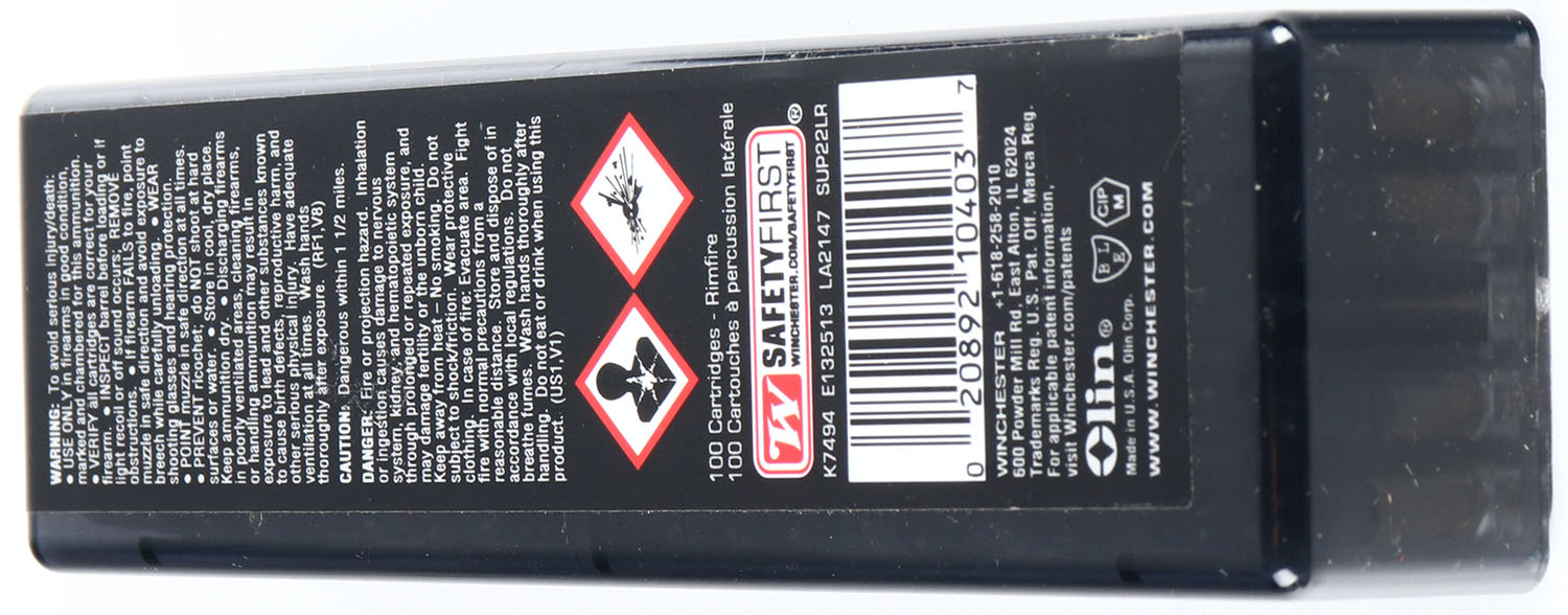 | Winchester, Super Suppressed, .22 Long Rifle, Subsonic 45 Grain ...