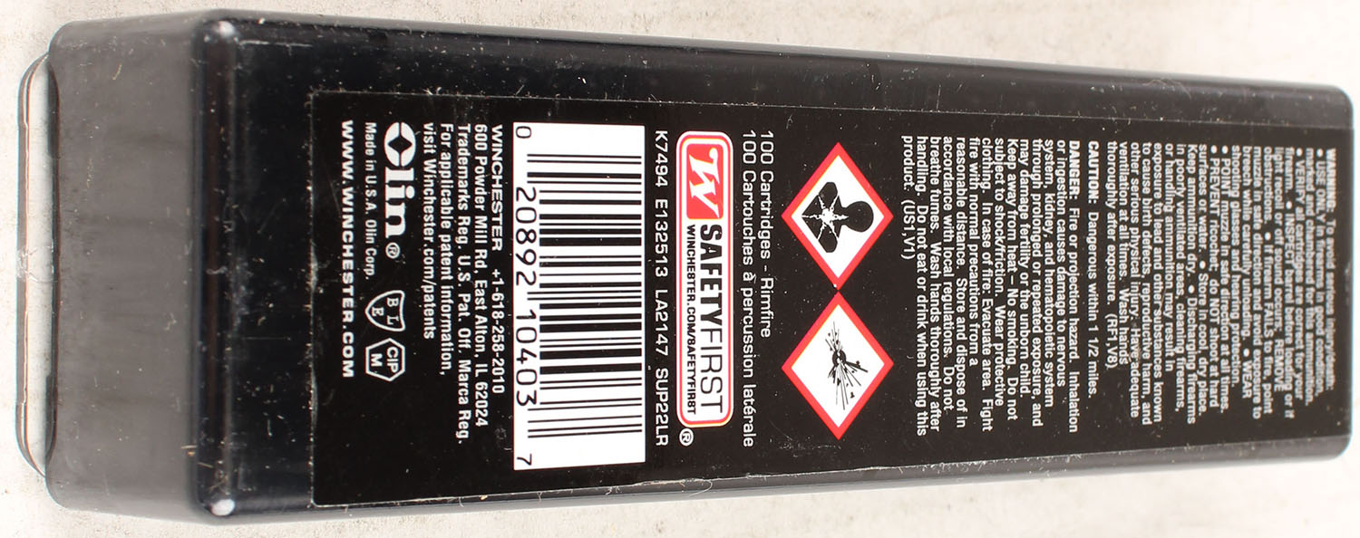 | Winchester, Super Suppressed, .22 Long Rifle, Subsonic 45 Grain ...