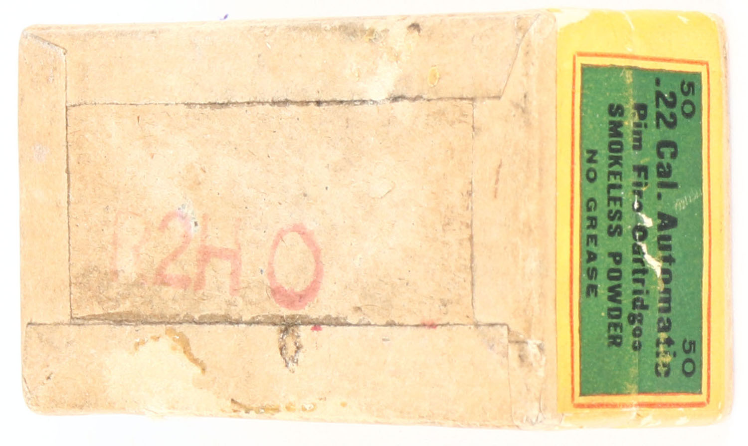 Western, Rim Fire Cartridges, .22 Automatic, Smokeless Powder, RHWeb: WCC-3 WA-2a, FULL & SEALED, 2pc. Buff box with green/yellow top & side sealing labels, box is solid with excellent color, minor age soiling & shelf wear, very minor corner wear, edges are mostly crisp, labels are intact. Grade: Excellent - Value: 100 to 400