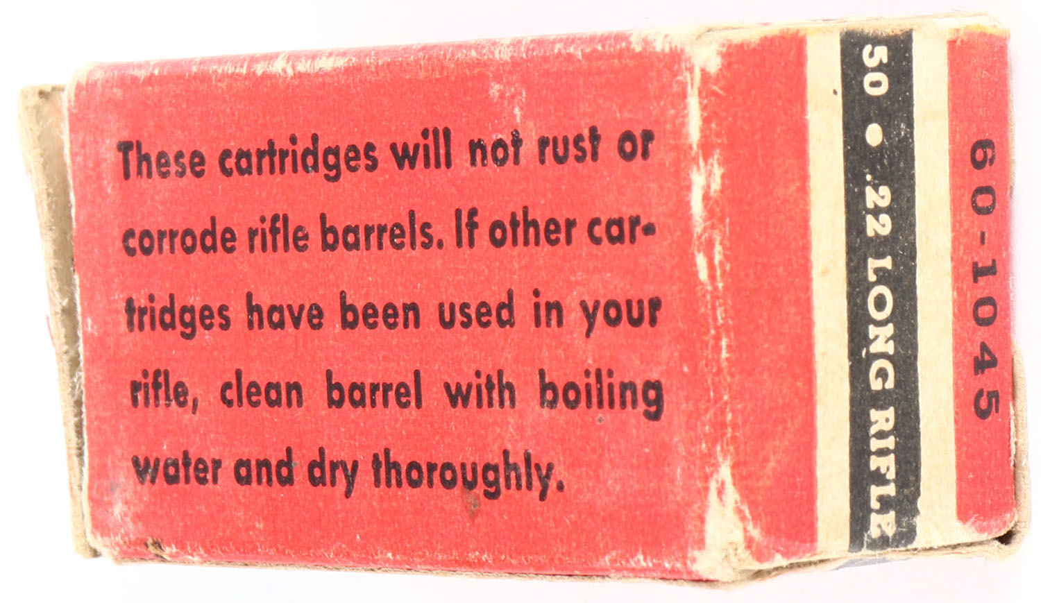 Wards, Long Range Cleanfire, .22 Long Rifle Hollow Point, Lead Lubricated, RHWeb: MW-4B LR-2c, Full, 1pc. Red black & white box, left end flap is torn, box has very good color, age soiling, some corner wear, very minor edge wear, right end flap is solid, ammo is excellent. Grade: Very Good + - Value: 10 to 50