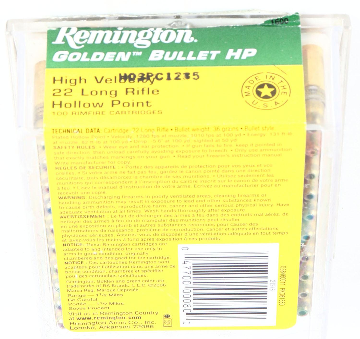 | Remington, 22 Golden Bullet HP, .22 Long Rifle Hollow Point, 36 ...
