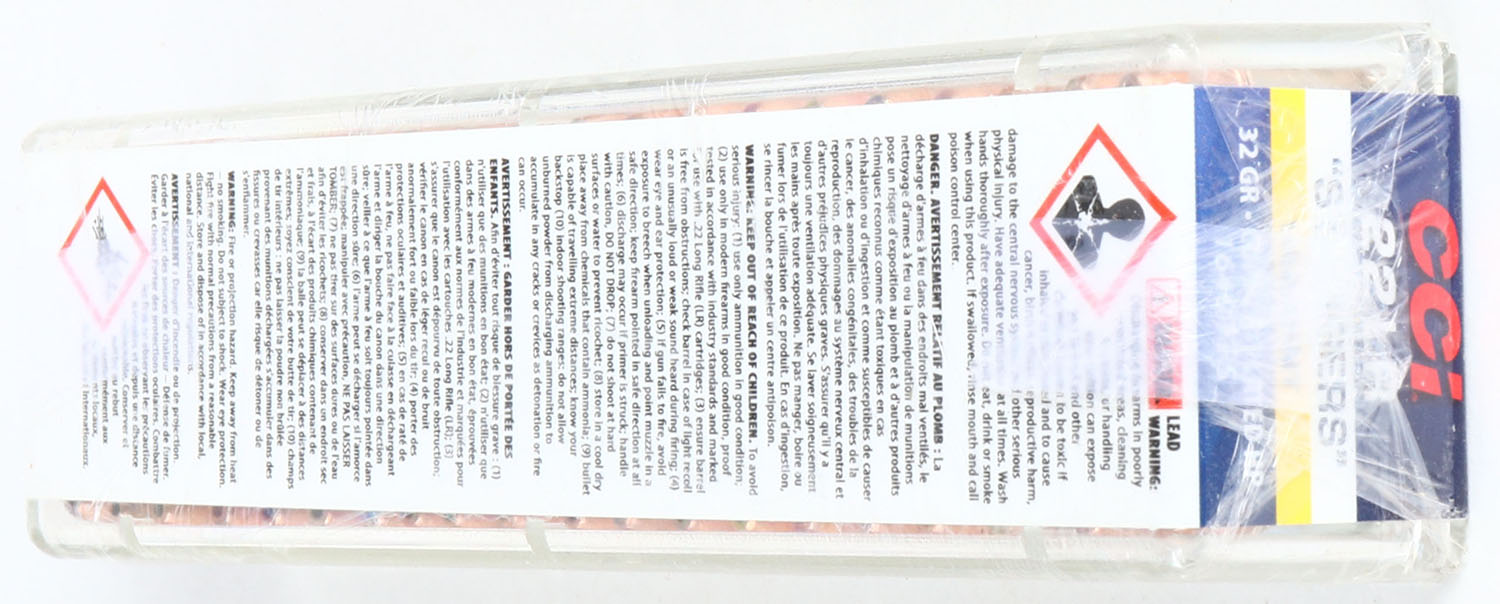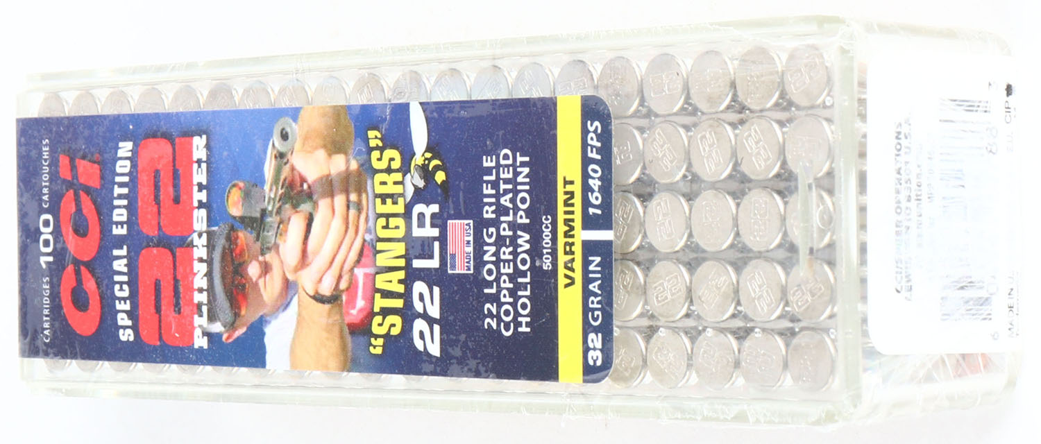 CCi, 22 Plinkster Special Edition ''Stangers'', .22 Long Rifle Stinger, FULL & SEALED, 2pc. Clear plastic tray with multi-colored sealing label, box and label are MINT with mint color, ammo appears mint. Grade: MINT - Value: 8 to 40