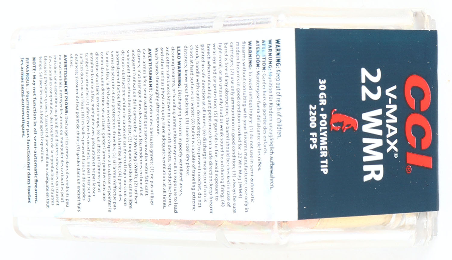 | CCi, V-Max, .22 WMR, 30 Grain Polymer Tip, 2200 FPS, FULL & SEA...