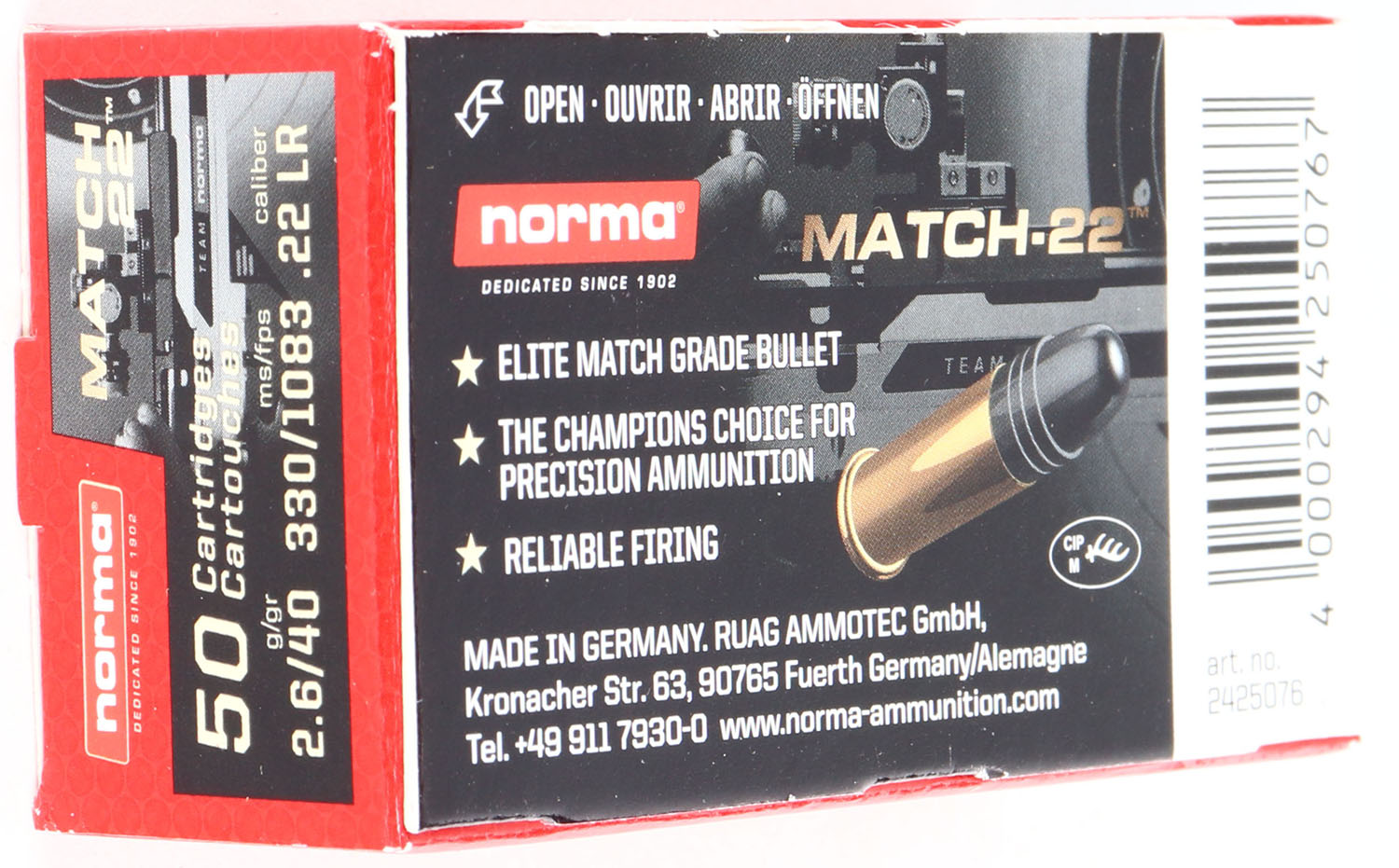 | Norma, Match-22, .22 Long Rifle, Lead Round Nose, 1083 FPS, Not ...