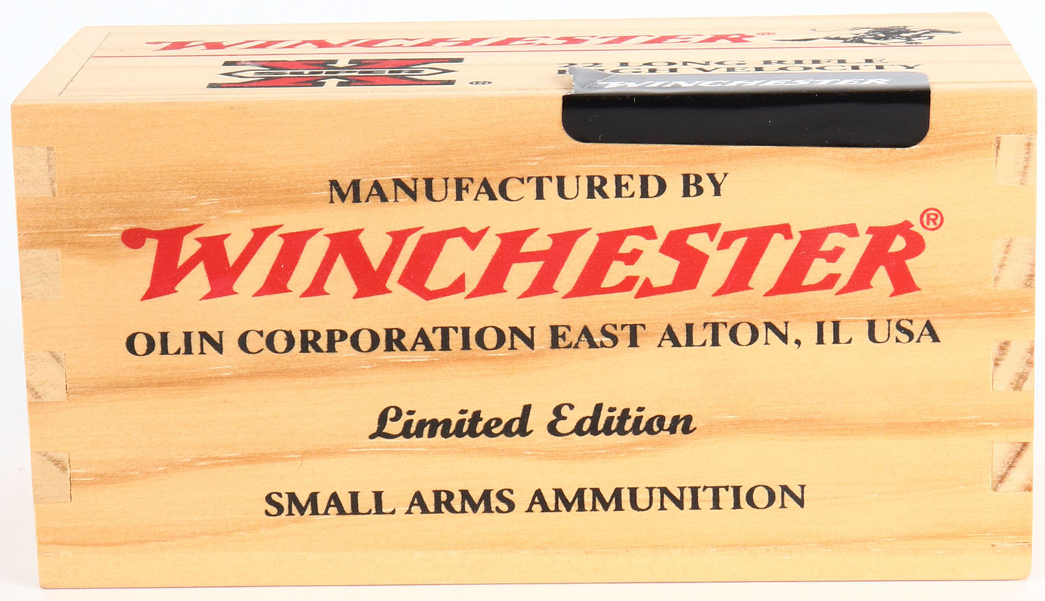 Winchester, Super X, .22 Long Rifle High Velocity, FULL & SEALED, 2pc. Wood box with red & black printing, box is MINT with minty color. Grade: MINT - Value: 30 to 90