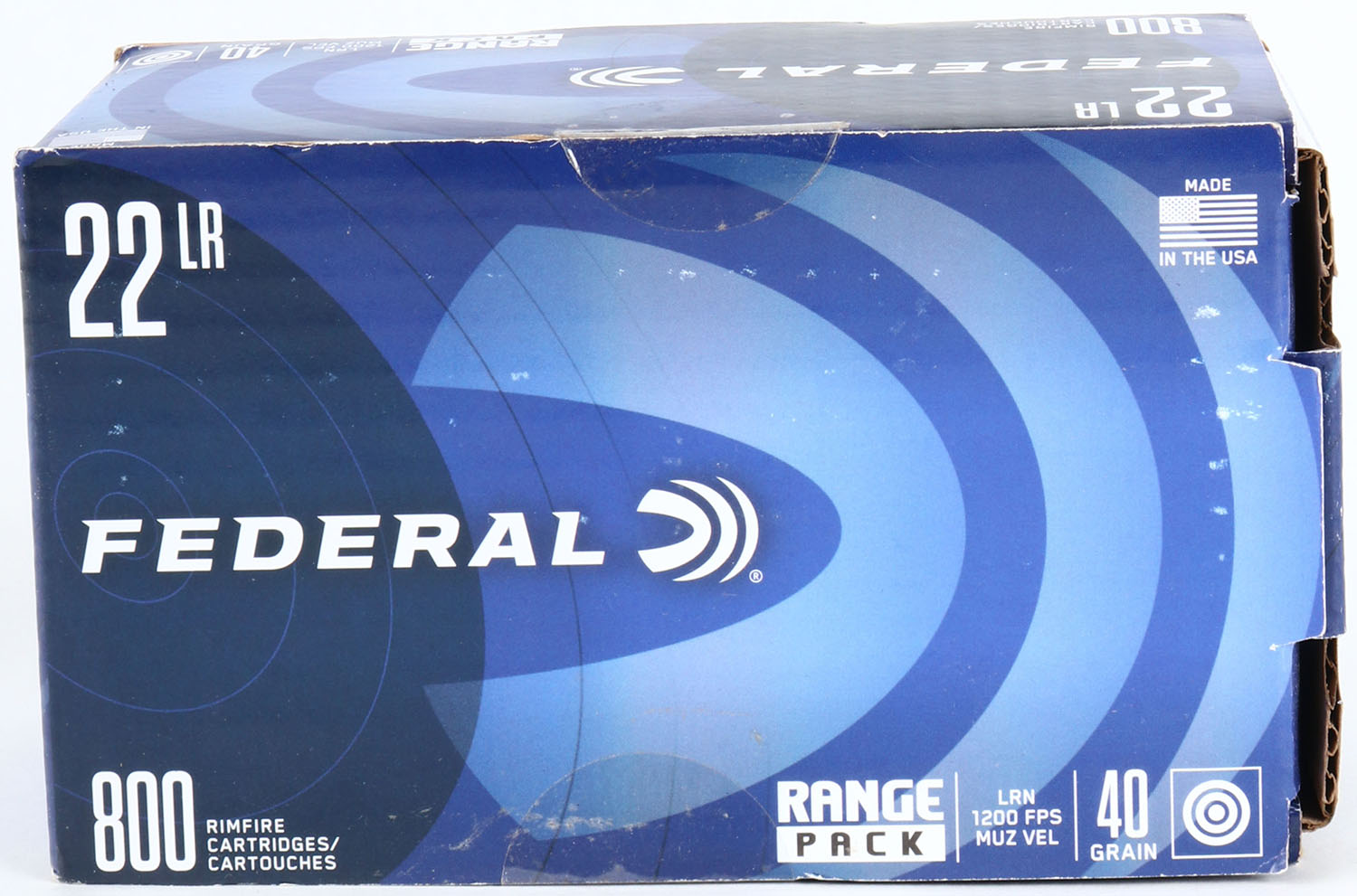 Federal, Range Pack, .22 Long Rifle, 40 Grain Lead Round Nose, 1200 FPS, FULL & SEALED, 800 rds., 1pc. Blue bulk box, box is solid with minty color, some shelf wear, corners are sharp, edges are crisp, top flap is solid. Grade: Excellent - Value: 40 to 80