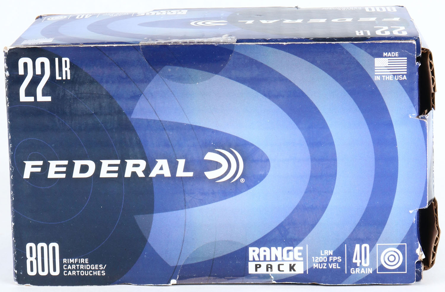 Federal, Range Pack, .22 Long Rifle, 40 Grain Lead Round Nose, 1200 FPS, FULL & SEALED, 800 rds., 1pc. Blue bulk box, box is solid with minty color, some shelf wear, corners are sharp, edges are crisp, top flap is solid. Grade: Excellent - Value: 40 to 80