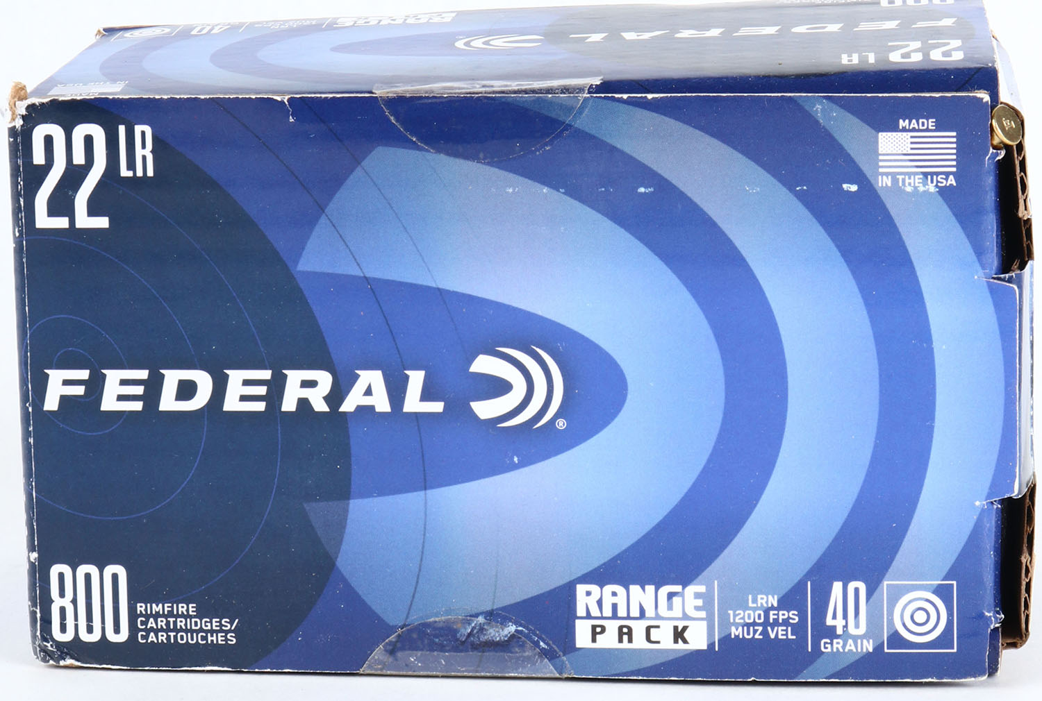 Federal, Range Pack, .22 Long Rifle, 40 Grain Lead Round Nose, 1200 FPS, FULL & SEALED, 800 rds., 1pc. Blue bulk box, box is solid with minty color, some shelf wear, corners are sharp, edges are crisp, top flap is solid. Grade: Excellent - Value: 40 to 80