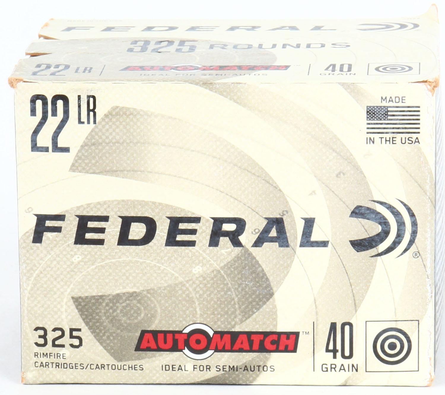 Federal, AutoMatch, .22 Long Rifle, Ideal for Semi-Autos, 40 Grain Solid, 1200 FPS, FULL & SEALED 325 rds. 1pc. Tan & black bulk box, box is solid with minty color, very minor corner wear, edges are crisp. Grade: Excellent ++ - Value: 20 to 40