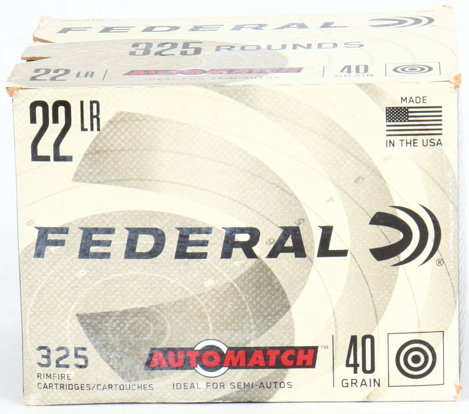 Federal, AutoMatch, .22 Long Rifle, Ideal for Semi-Autos, 40 Grain Solid, 1200 FPS, FULL & SEALED 325 rds. 1pc. Tan & black bulk box, box is solid with minty color, very minor corner wear, edges are crisp. Grade: Excellent ++ - Value: 20 to 40