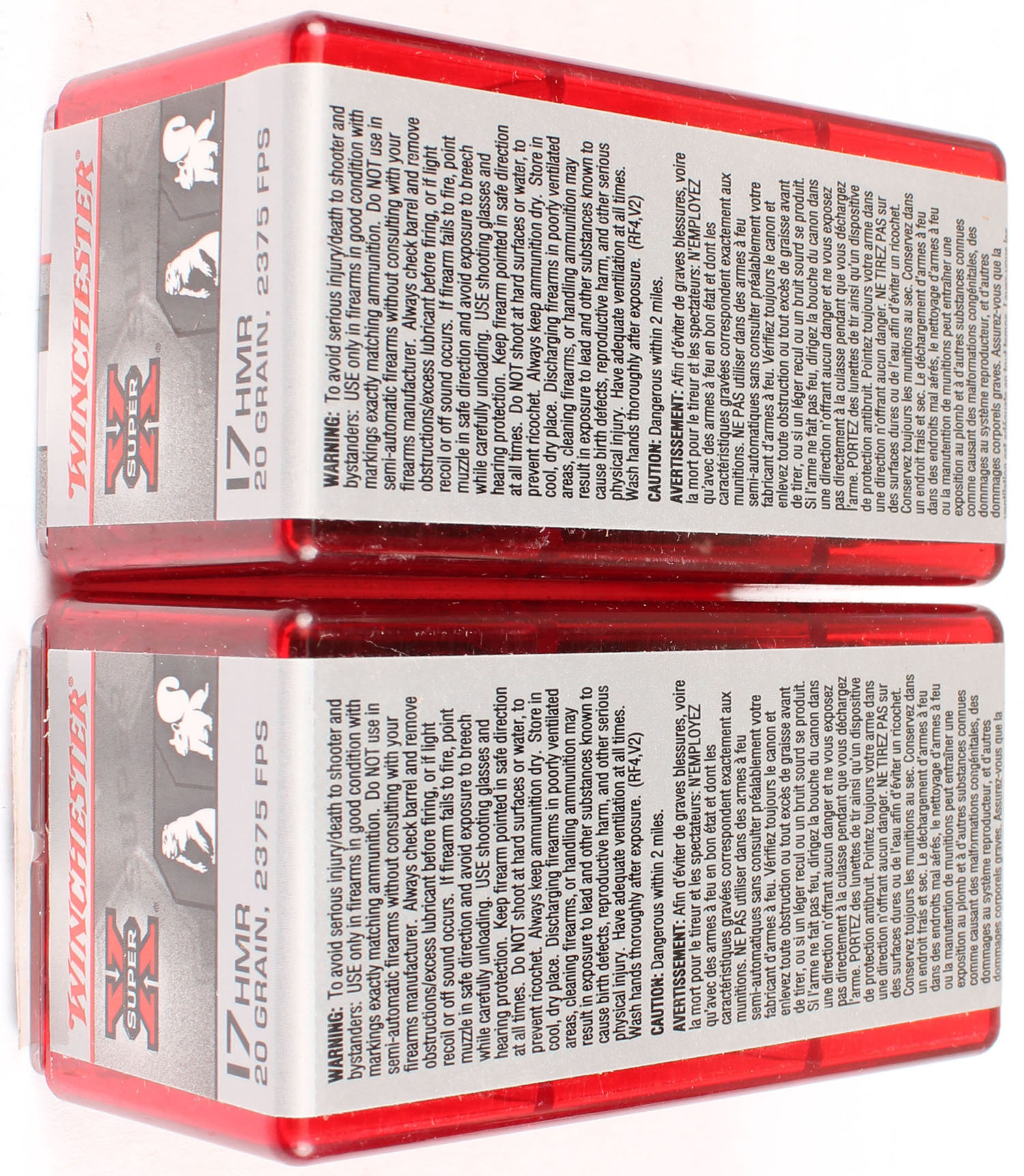 Winchester, Lot of (2), Super X, .17 HMR, 20 Grain Jacketed Hollow Point, 2375 FPS, FULL & SEALED, 2pc. Red plastic tray with gray & red sealing label, boxes are MINT with mint color, labels are minty, ammo appears mint. Grade: MINT - Value: 20 to 60