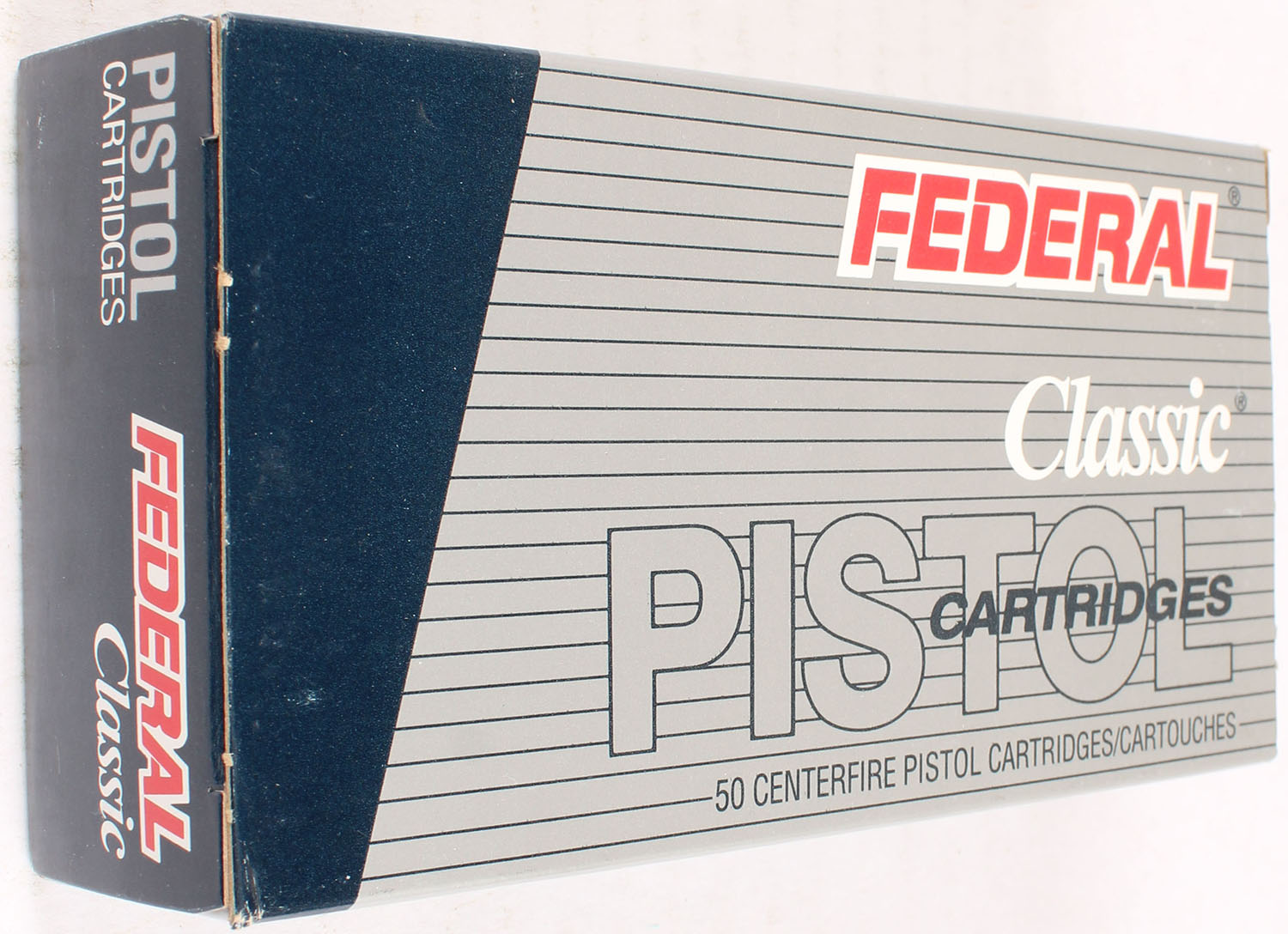 Federal, Classic, 10mm Auto, 190 Grain Jacketed Hollow Point, Full, 1pc., multi-colored box, box is solid with great color, end flaps are solid, ammo is excellent. Grade: Excellent + - Value: 20 to 80