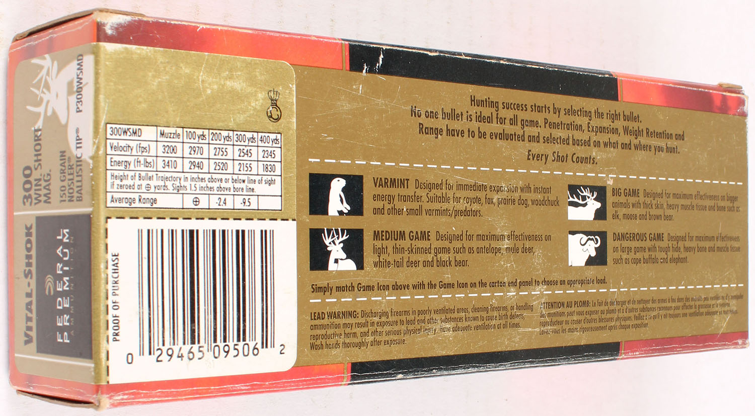 Federal, Vital-Shok, 300 Win Short Mag, 150 Grain Nosler Ballistic Tip, Full with 1rd being incorrect, 1pc., multi-colored box, box is solid with very good color, light shelf wear, light edge & corner wear, end flaps are solid, ammo is excellent. Grade: Very Good ++ - Value: 20 to 80
