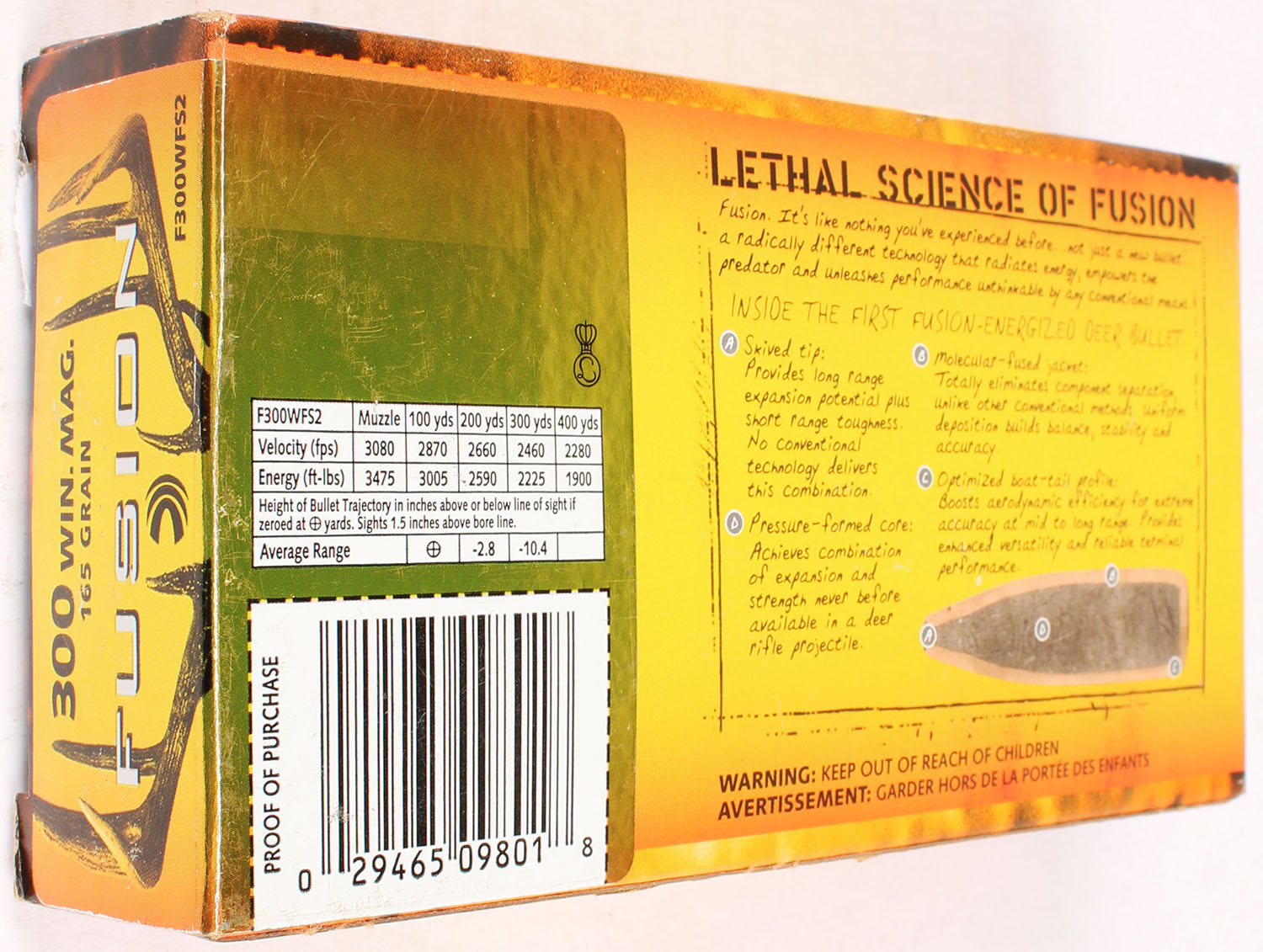 Federal, Fusion, 300 Win Mag, 165 Grain, Full, 1pc., multi-colored box, box is solid with great color, light corner wear, end flaps are solid, ammo is excellent. Grade: Excellent - Value: 20 to 80