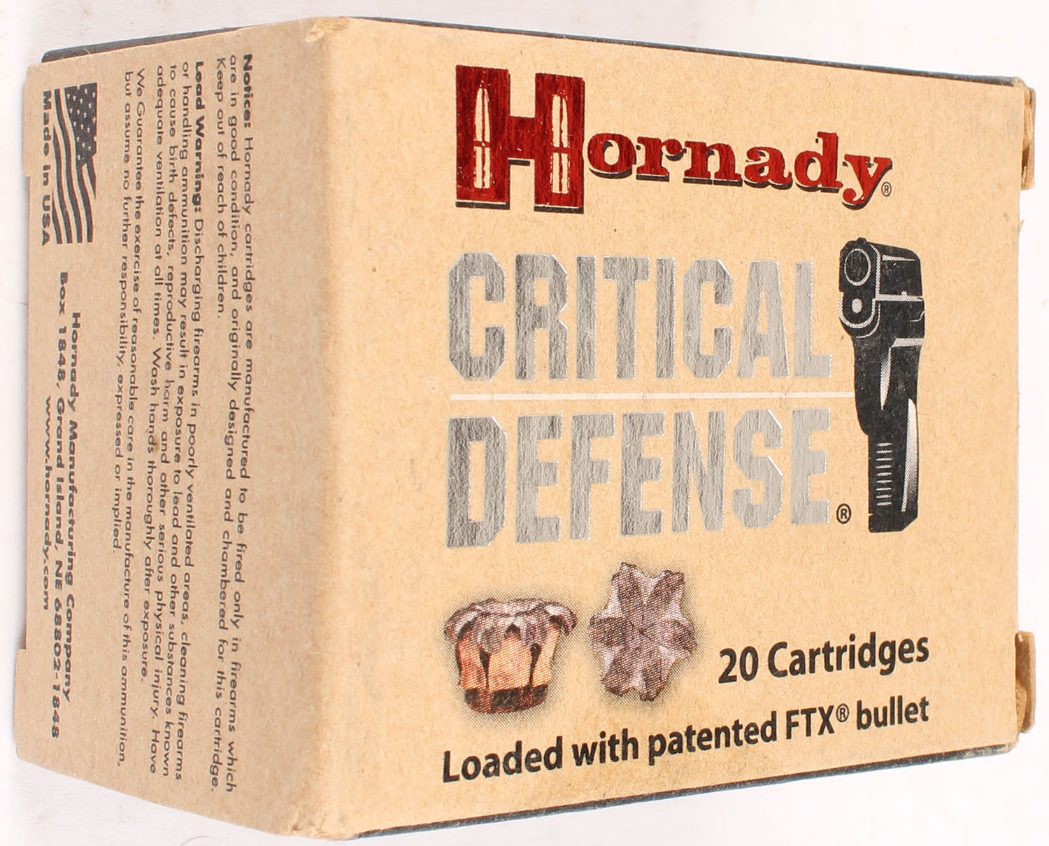 Hornady, Critical Defense, .45 Colt, 185 Grain FTX, Full, 1pc. multi-colored box, box is solid with excellent color, Ammo is excellent. Grade: Excellent ++ - Value: 20 to 60