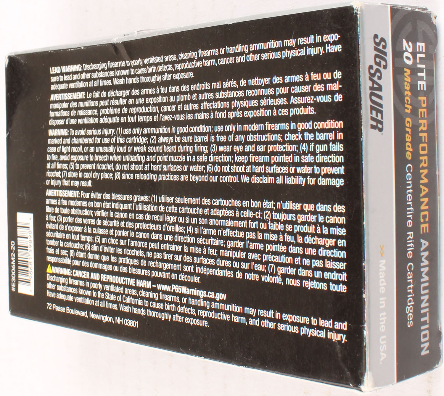 Sig Sauer, Elite Performance, 30-06 SPRG., 175 Grain OTM Match Grade Rifle, Full, 1pc. multi-colored box, box is solid, Ammo is excellent. Grade: Excellent ++ - Value: 10 to 50