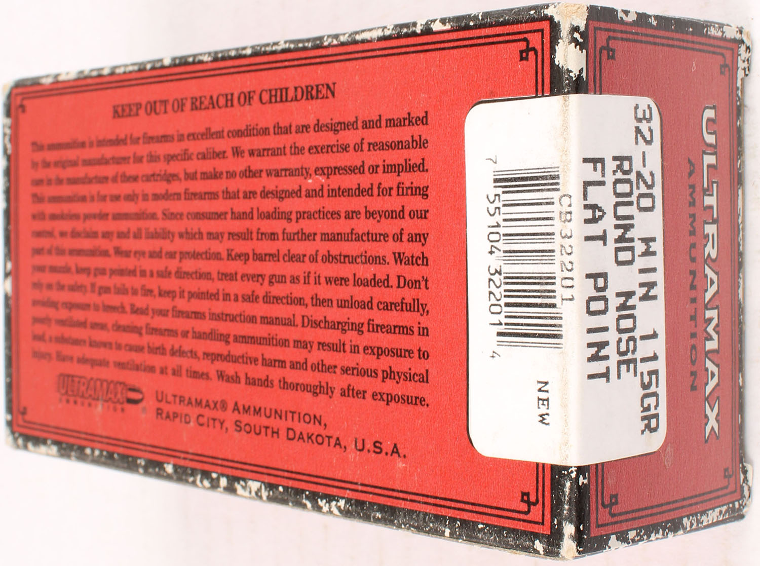 Ultramax 32-20 Win. 115 gr. RNFP, Full, 1pc. multi-colored box, box is bright and clean, Ammo is excellent. Grade: Excellent - Value: 20 to 60