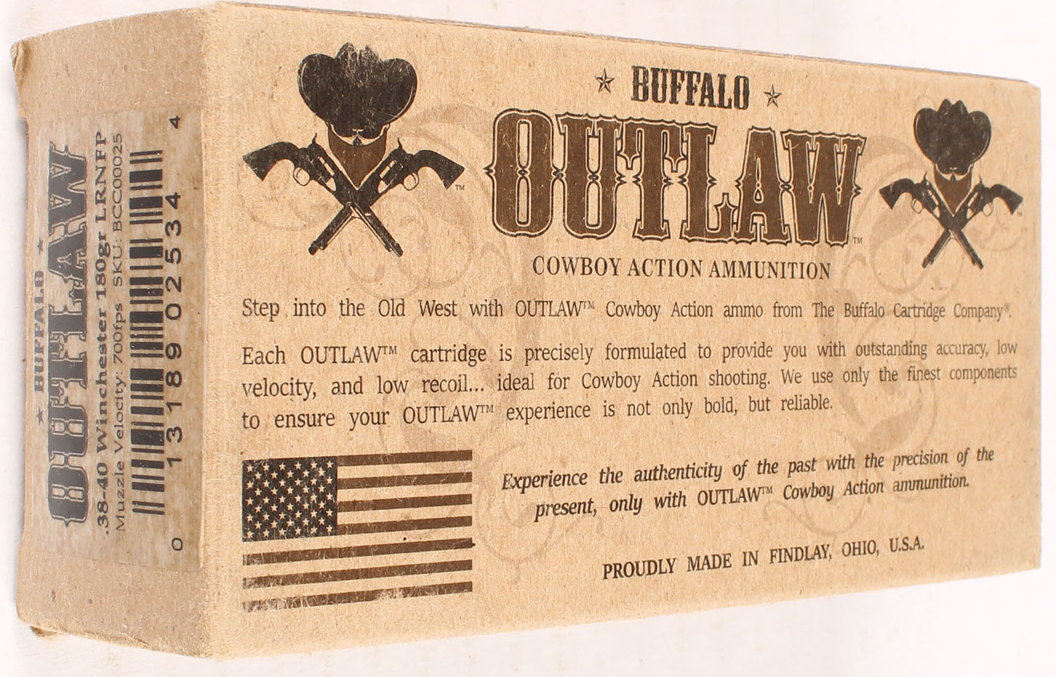 Buffalo Outlaw .38-40 Win, 180 gr. LRNFP, FULL, 1pc. multi-colored box, box is bright and clean, Ammo is excellent. Grade: Excellent - Value: 20 to 60