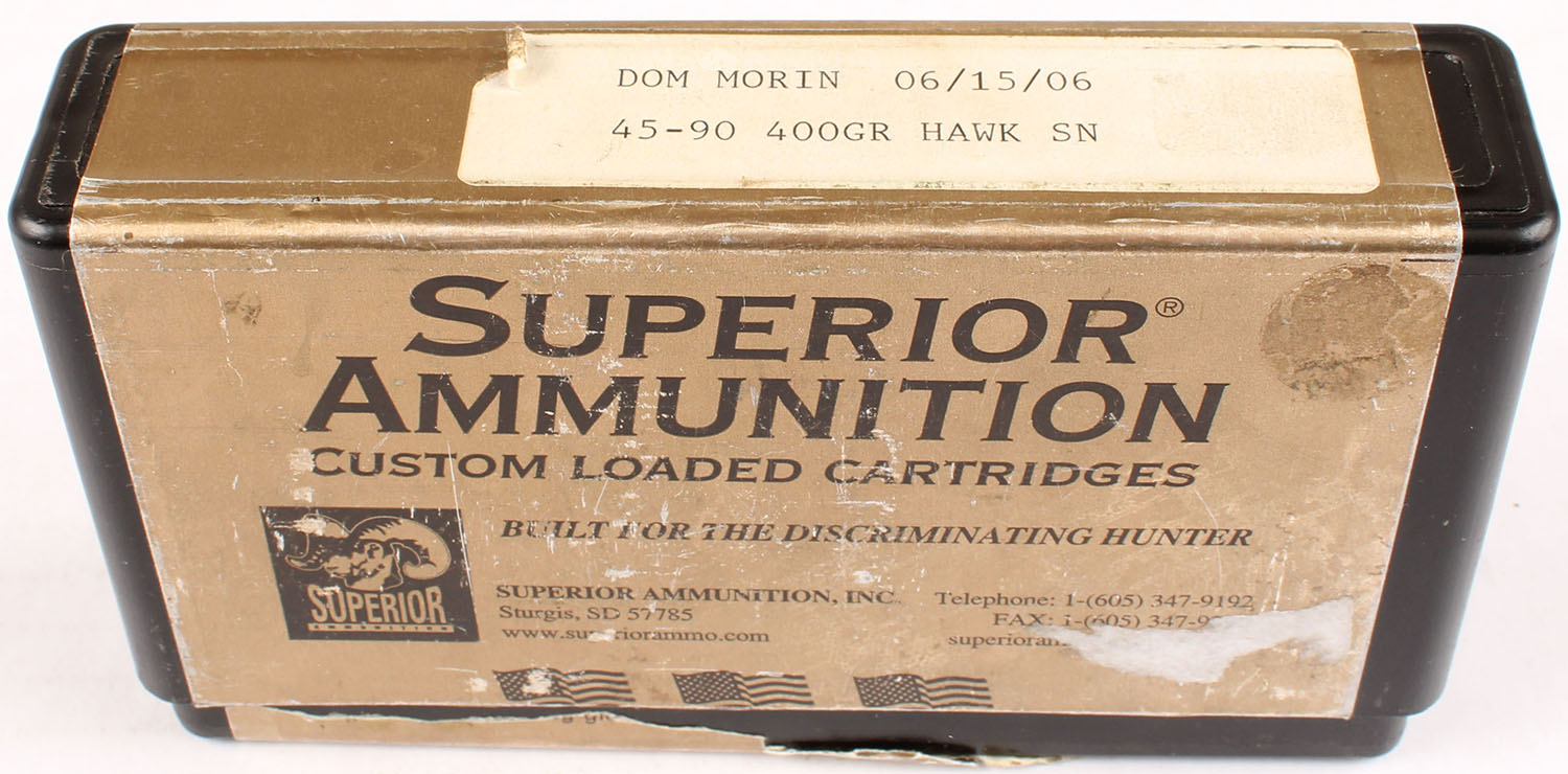 Superior Ammo., 45-90, 400 gr HAWK SN, FULL, 1pc. multi-colored box, box is bright and clean, Ammo is excellent. Grade: Excellent - Value: 20 to 60