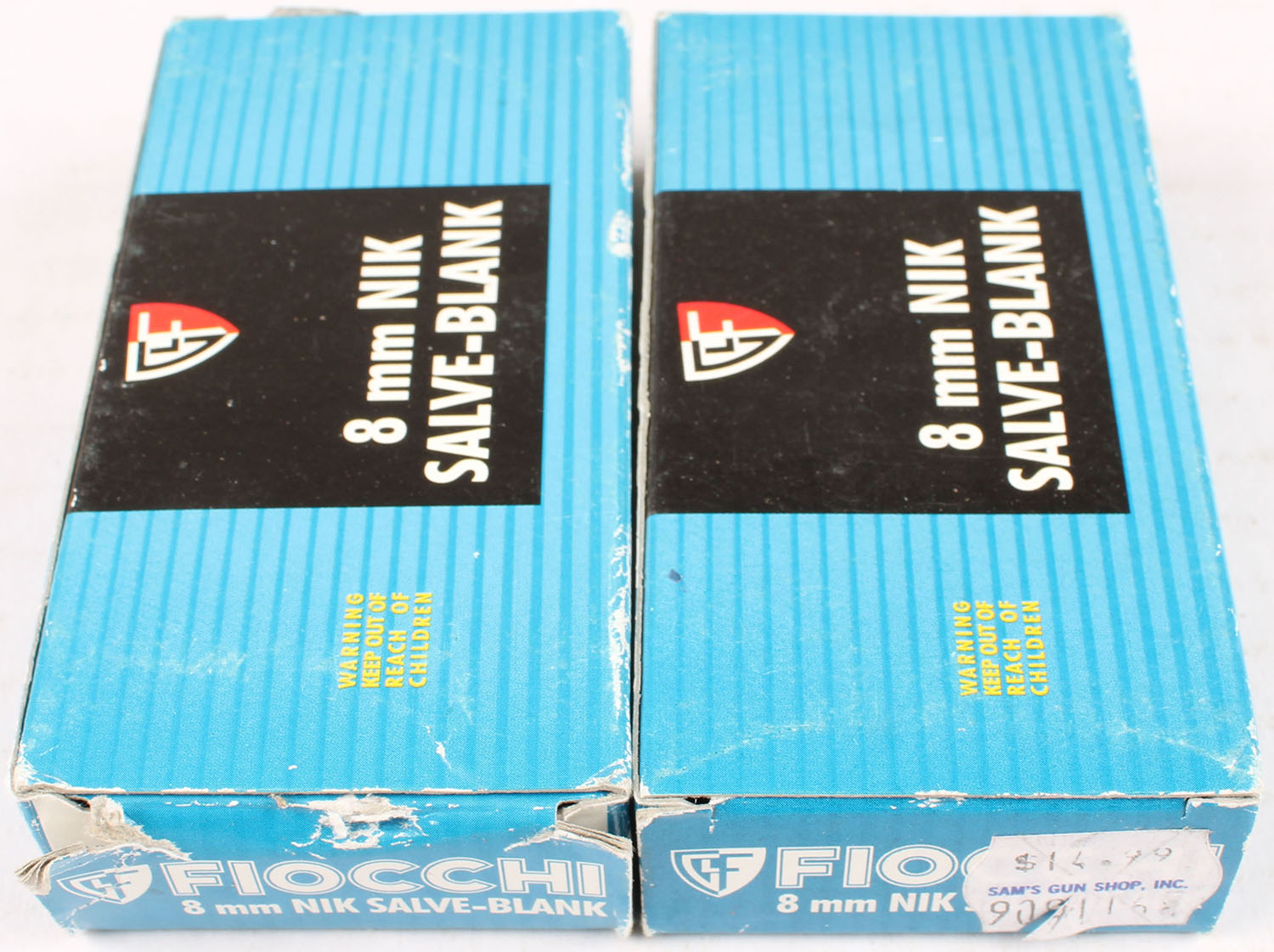 Lot of 2 Fiocchi 8mm Nik SALVE-Blank, 1pc, Full, multi-colored box, box is solid has scuffing, ammo is excellent. Grade: Excellent - Value: 20 to 80