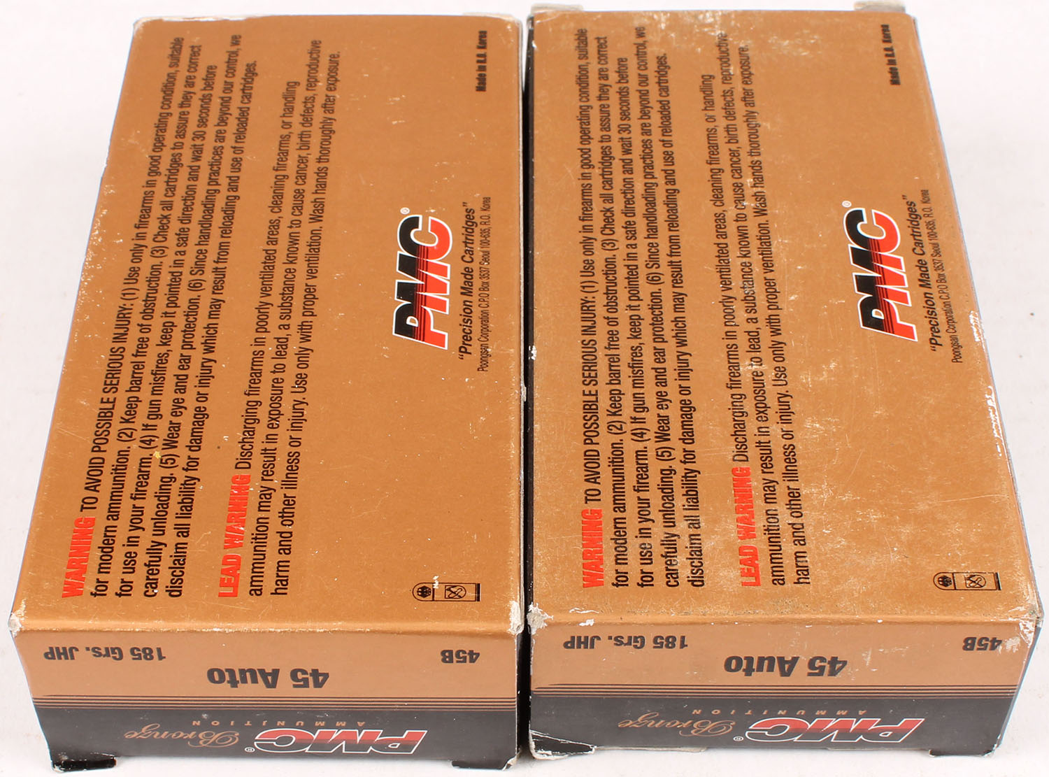 Lot of 2 PMC Bronze, .45 auto, 230 Gr., 1pc, Full, box is solid, ammo is excellent. Grade: Excellent - Value: 20 to 60