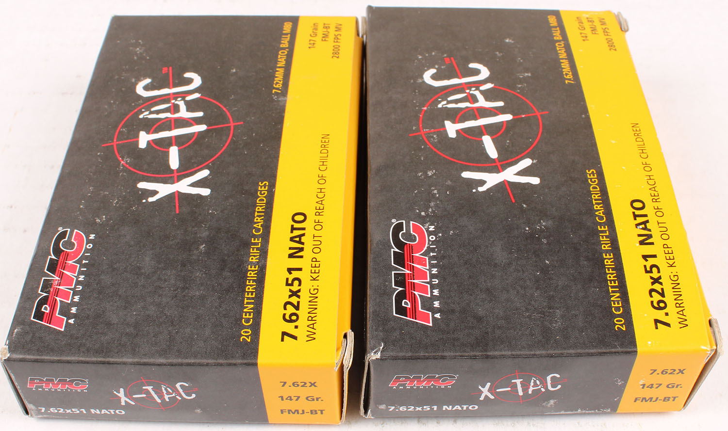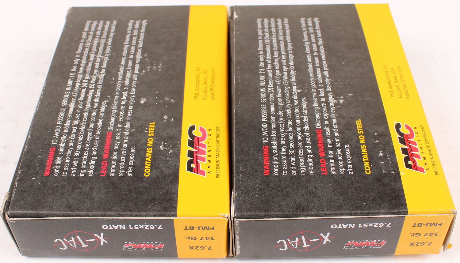 Lot of 2 PMC, X-Tac, 7.62 x 51 Nato, 147 Grain FMJ-BT, Full, 1pc., multi-colored box, box is solid with excellent color, Ammo is excellent. Grade: Excellent - Value: 16 to 60