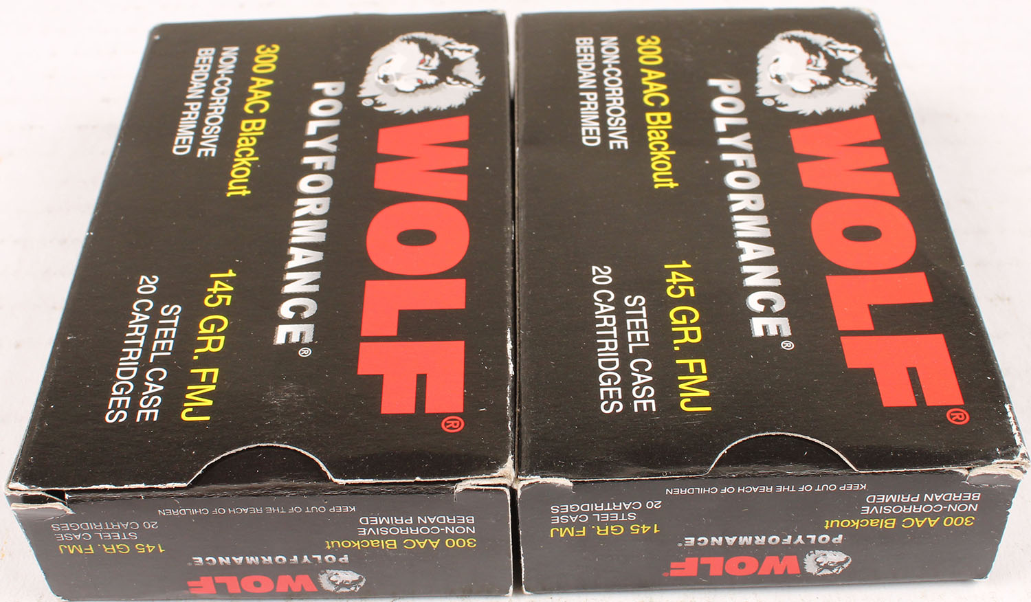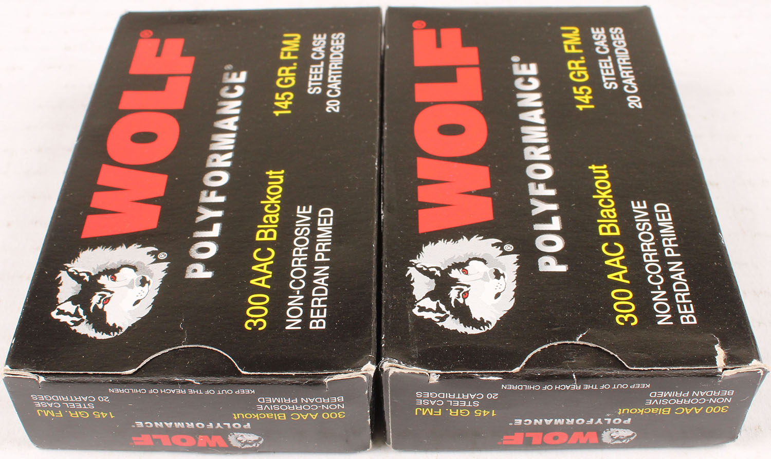 Lot of 2 Wolf, .300 AAC Blackout, 145 Grain, Full, 1pc., multi-colored box, box is solid with excellent color, Ammo is excellent. Grade: Excellent - Value: 10 to 50