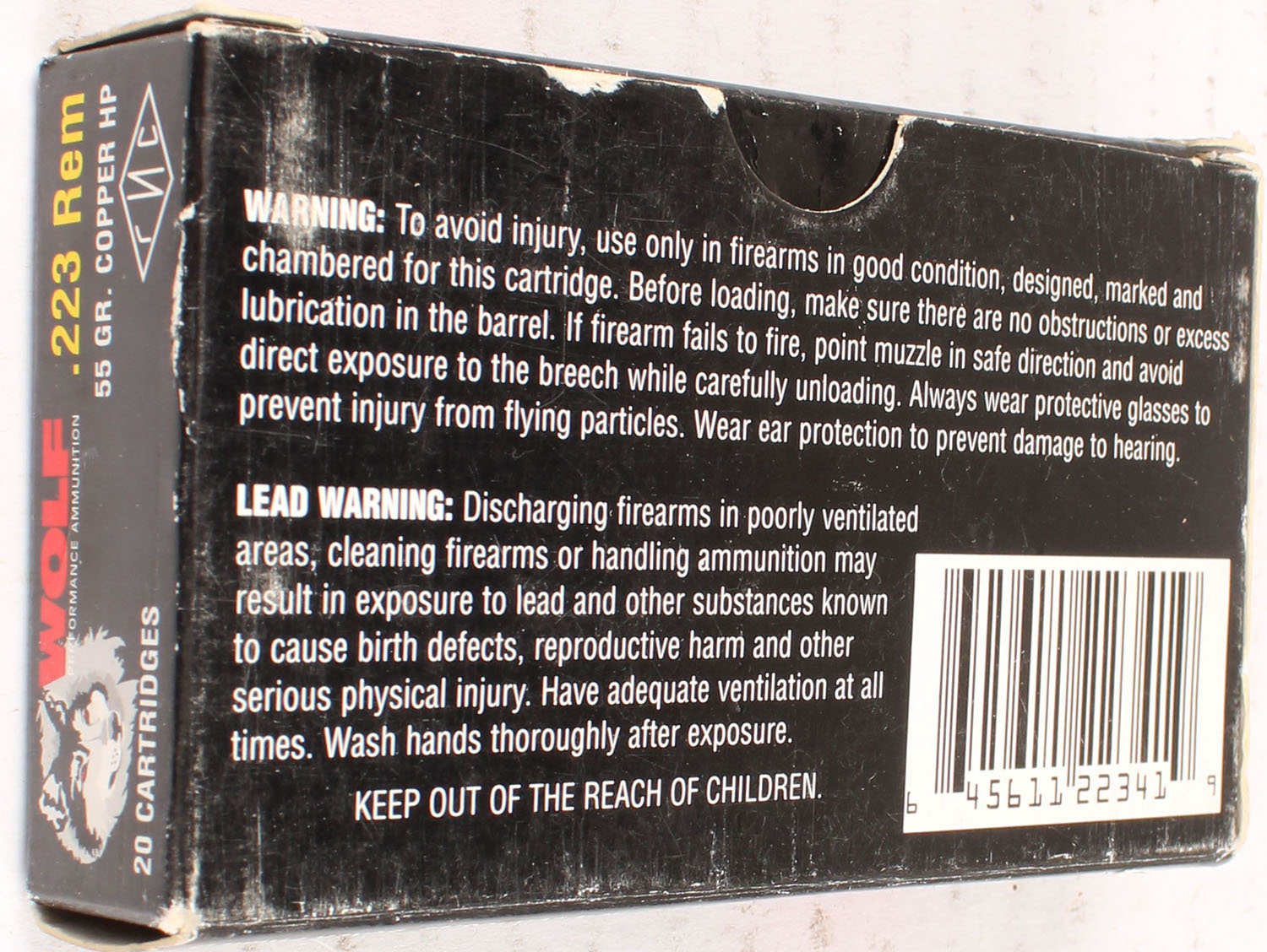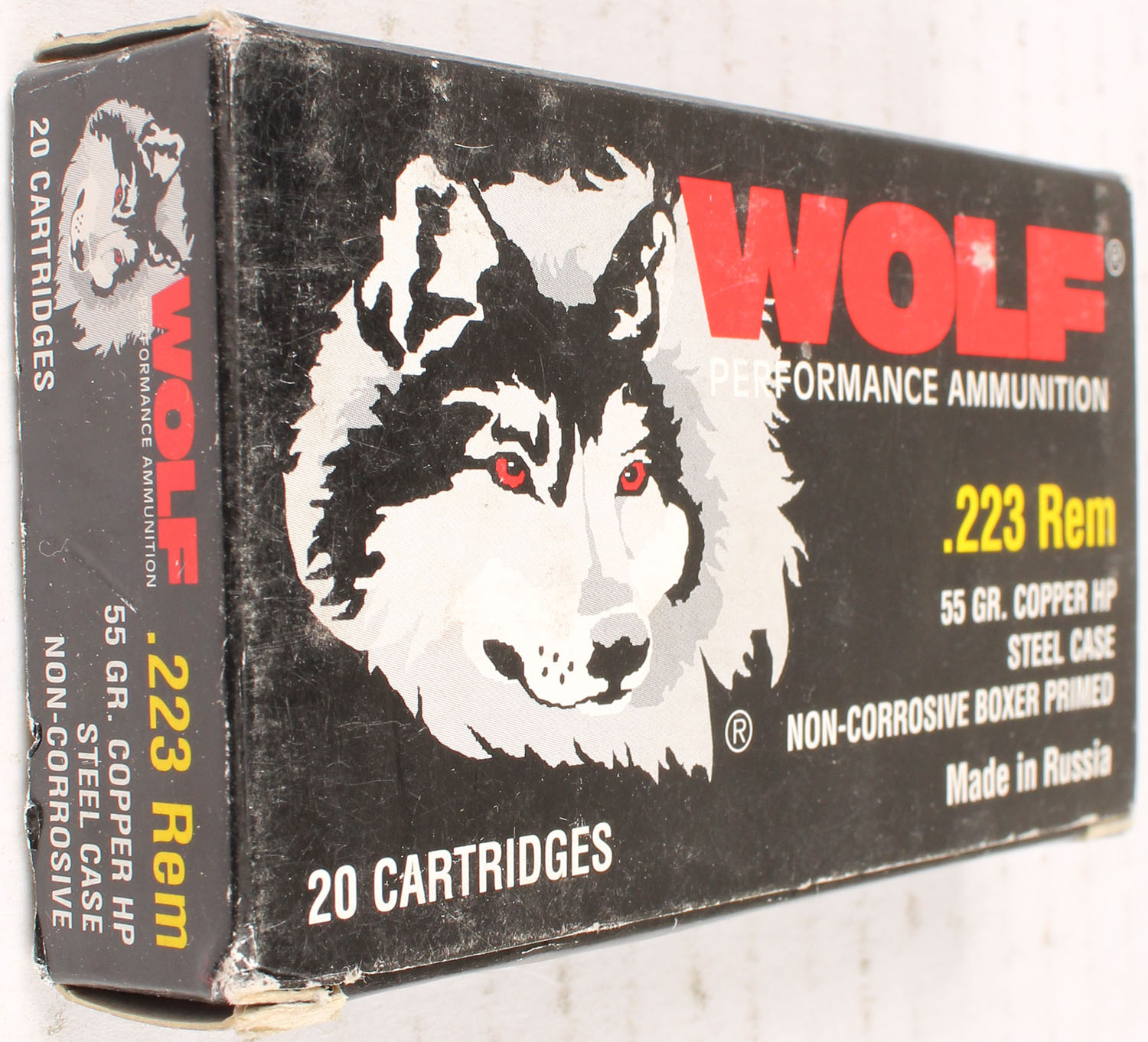 Wolf, .223 Rem., 55 Grain, Full, 1pc., multi-colored box, box is solid with excellent color, Ammo is excellent. Grade: Excellent - Value: 6 to 40