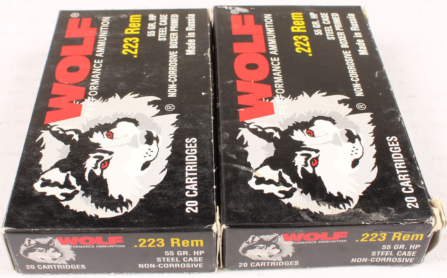 | Lot of 2 Wolf, .223 Rem., 55 Grain, Full, 1pc., multi-colored bo...