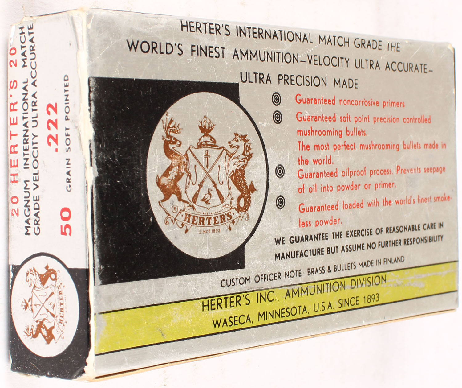 Herters, .222 cal., FULL, both solid, ammo is excellent. Grade: Excellent - Value: 6 to 40