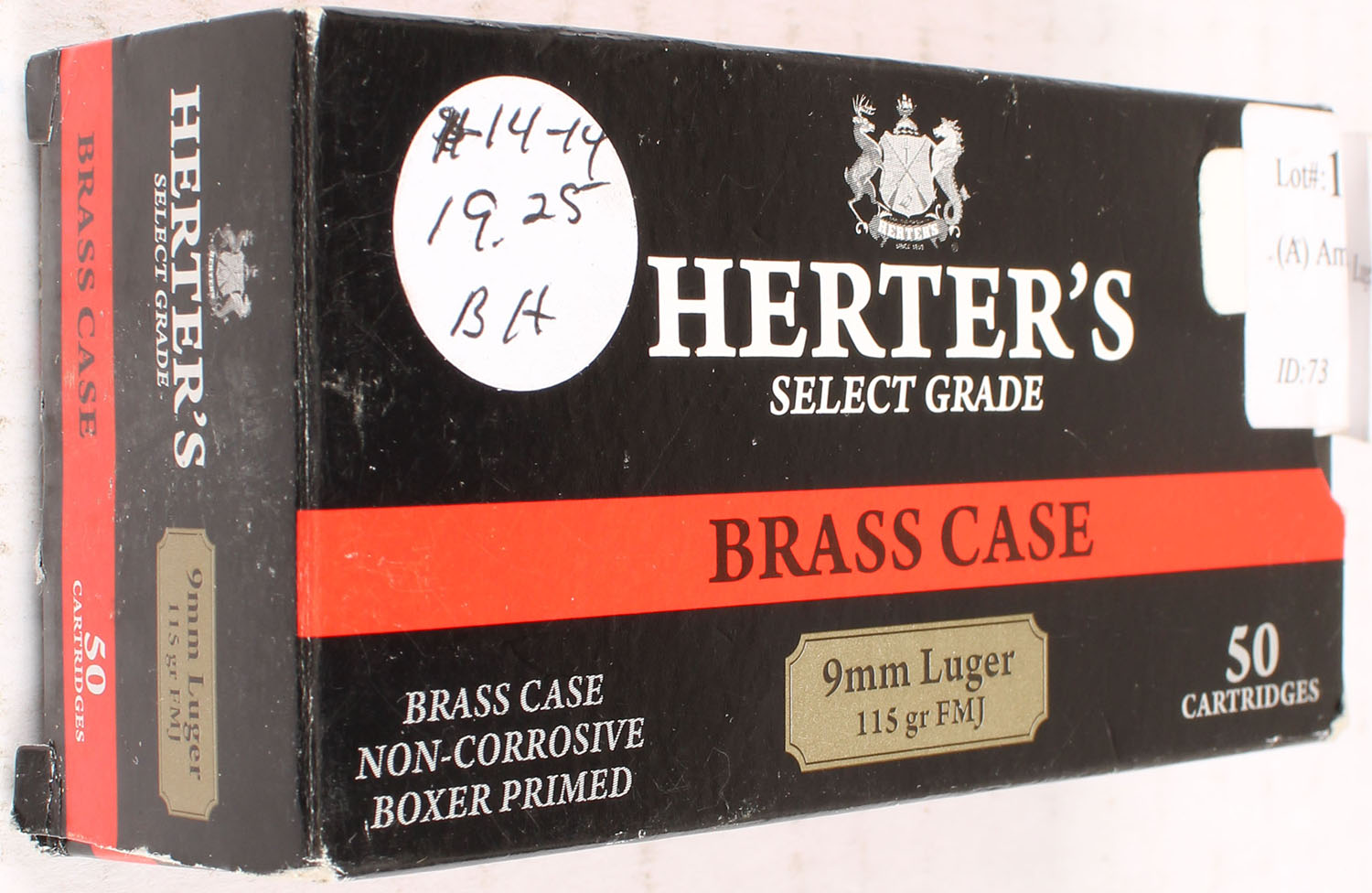 | Herters, 9mm luger, FULL, both solid, ammo is excellent. Grade: ...