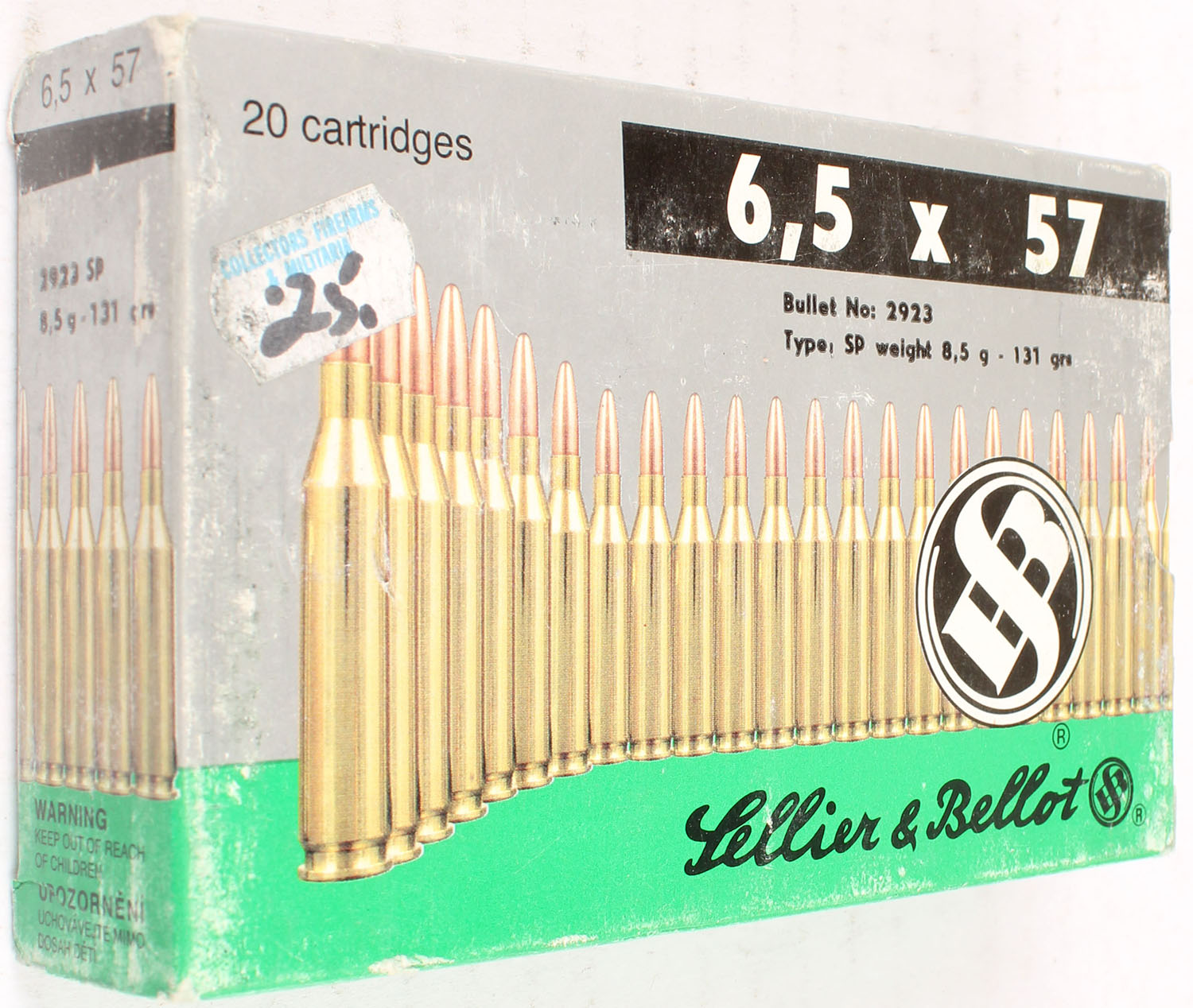 Sellier & Bellot, 6.5 x 57, FULL, has scuffing, ammo is very good. Grade: Very Good ++ - Value: 10 to 50