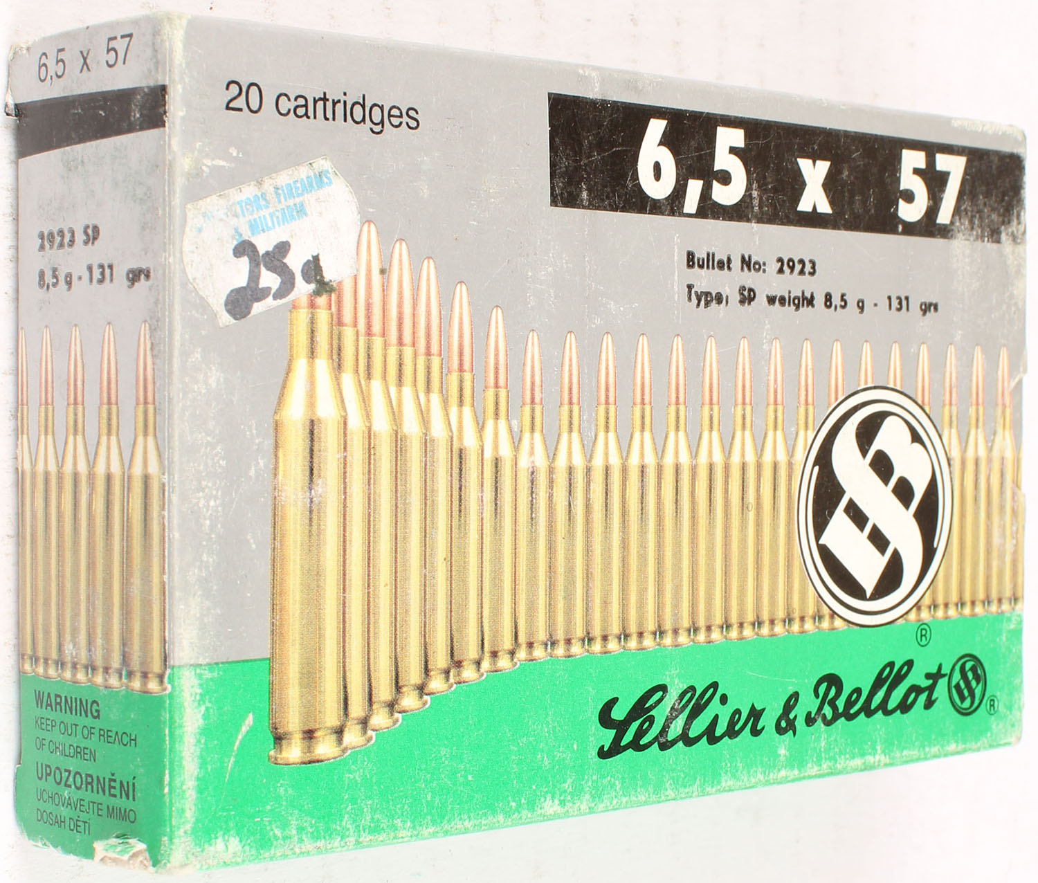 Sellier & Bellot, 6.5 x 57, FULL, has scuffing, ammo is very good. Grade: Very Good ++ - Value: 10 to 50