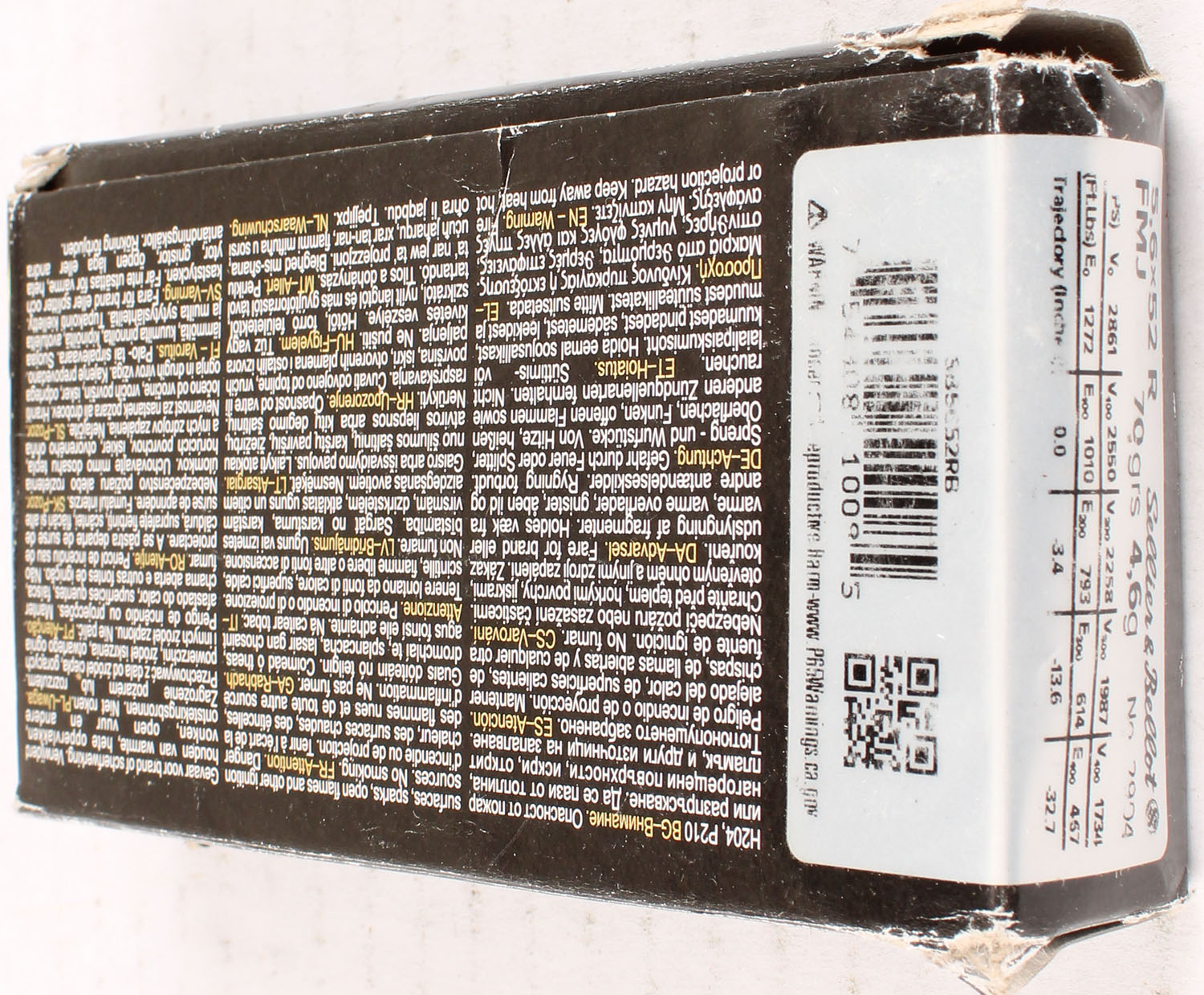 Sellier & Bellot, 5.6 x 52R, FULL, has scuffing, ammo is very good. Grade: Excellent - Value: 10 to 50