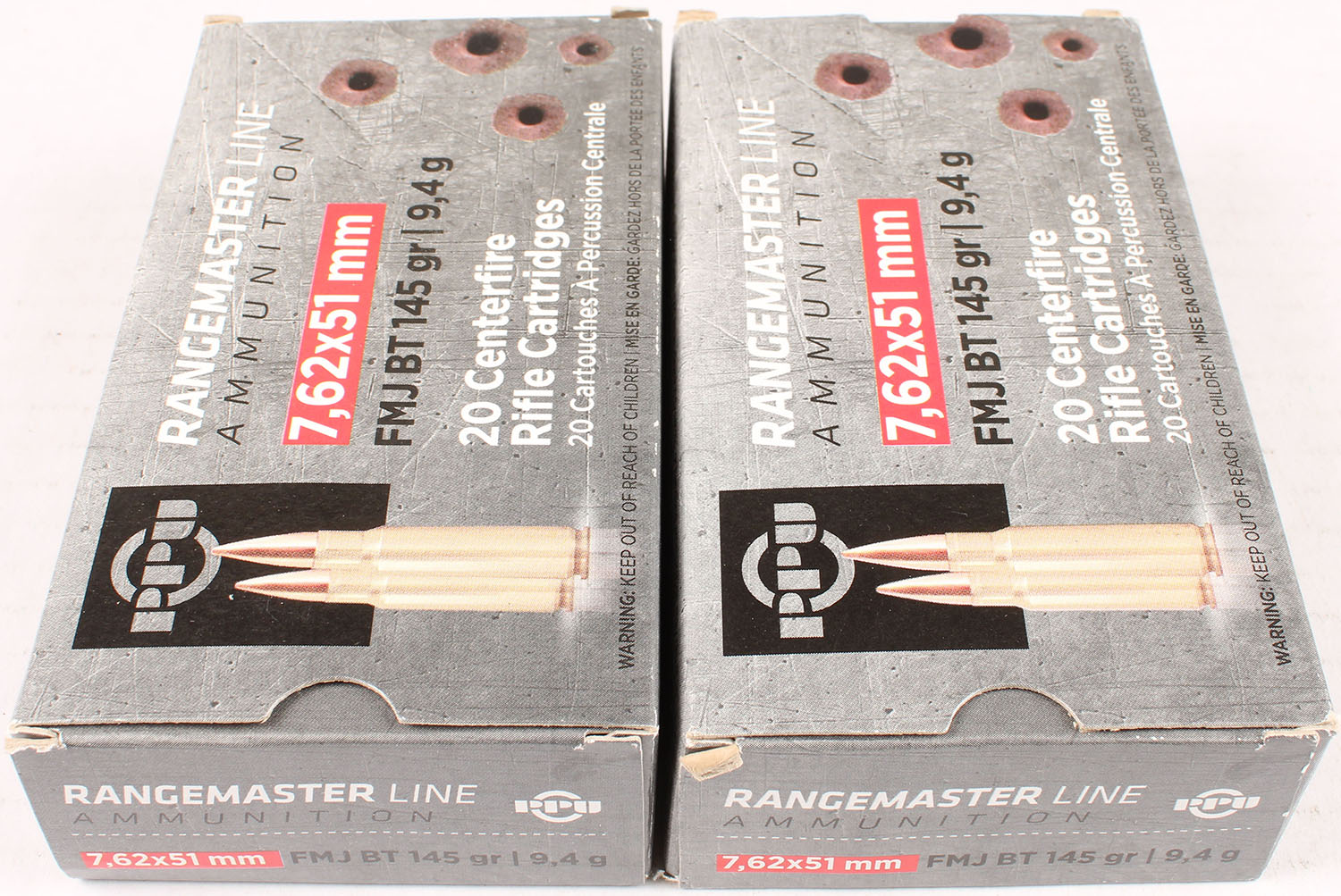Lot of 2 PPU, 7.62 x 51mm, 145 Grs., Full, 1pc. Multi-colored box, box is solid, with excellent color, Ammo is excellent. Grade: Excellent - Value: 20 to 80