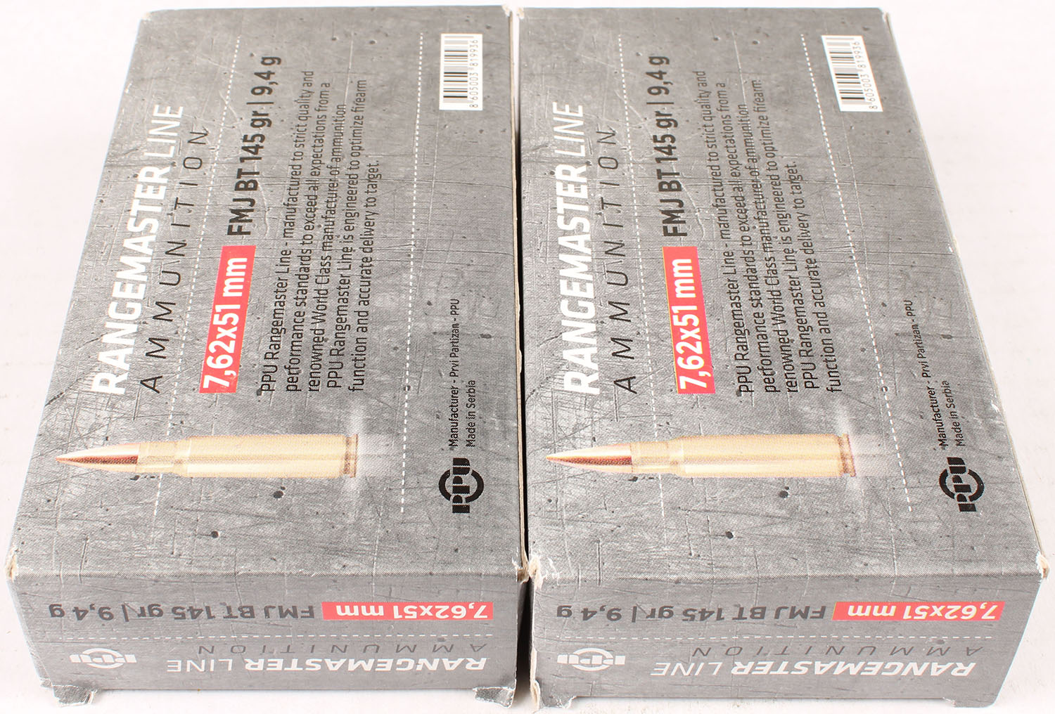 | Lot of 2 PPU, 7.62 x 51mm, 145 Grs., Full, 1pc. Multi-colored bo...