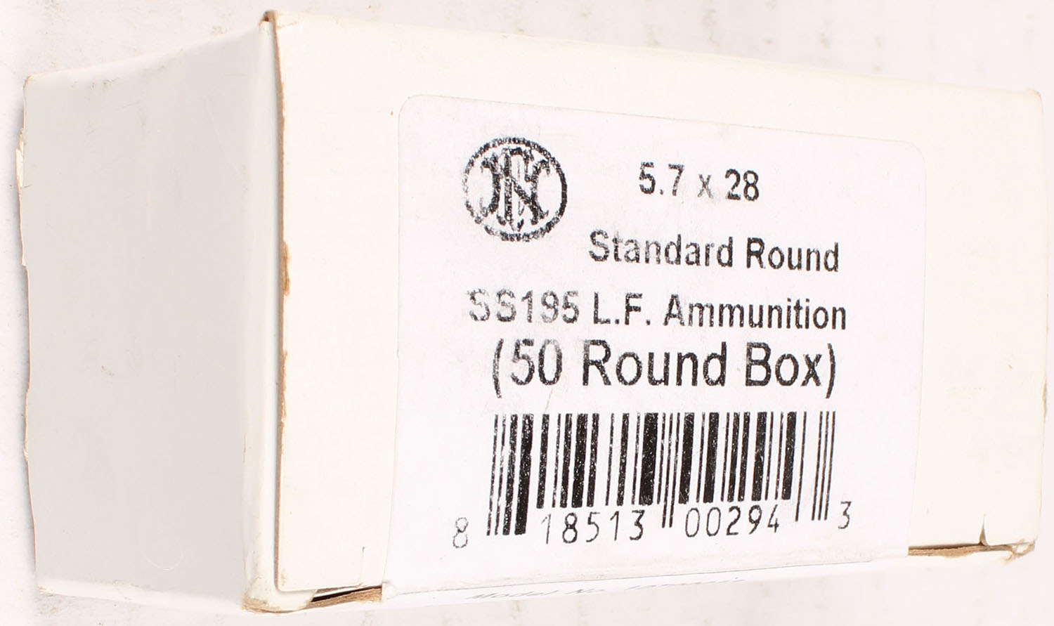 FN 5.7 x 28, Full, 1pc., box is solid, with excellent color, Ammo is excellent. Grade: Excellent - Value: 10 to 50