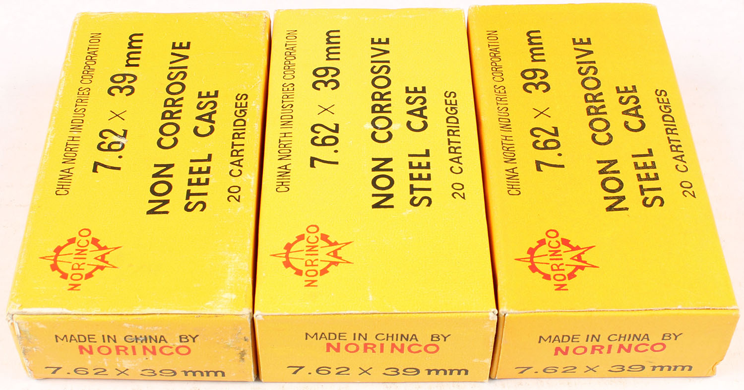 Lot of 3 Norinco 7.62 x 39 mm, Full, ammo is excellent. Grade: Excellent - Value: 16 to 60