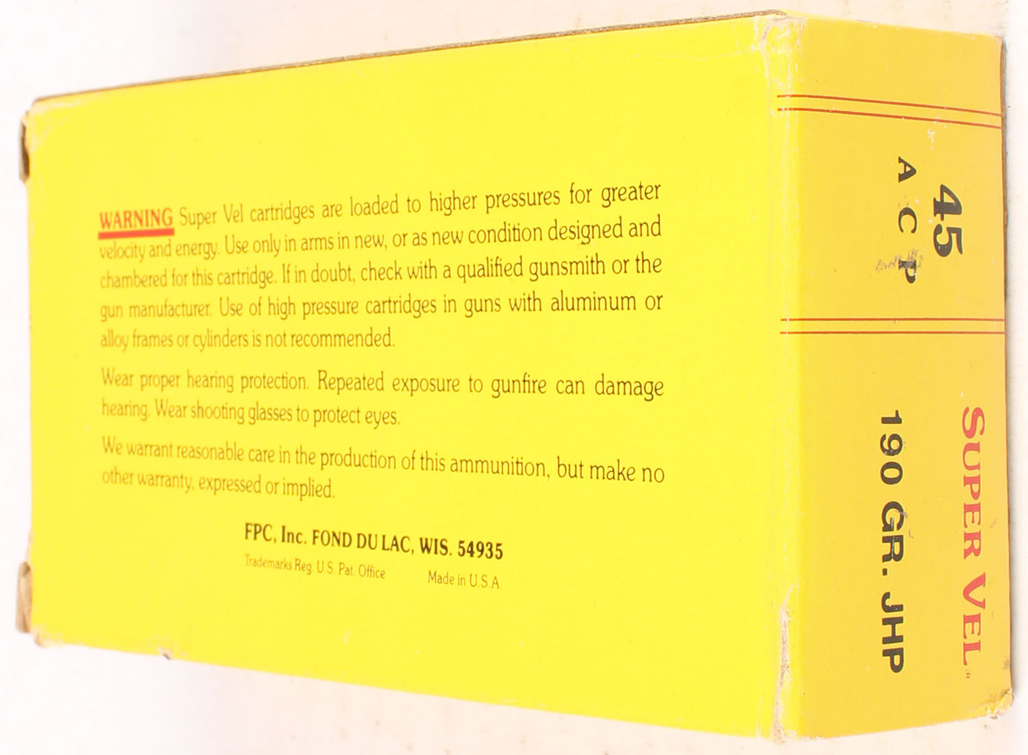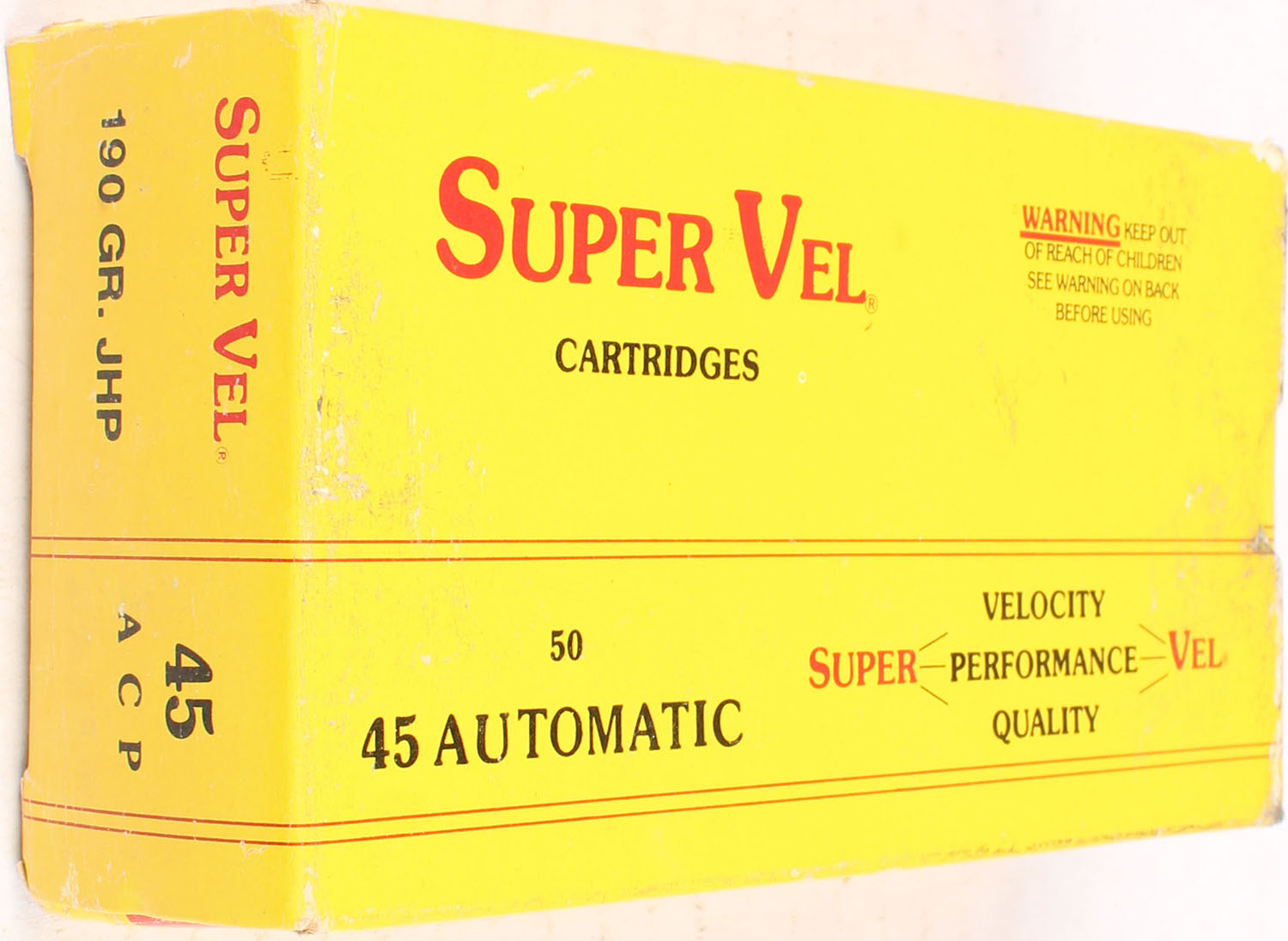 Super-Vel .45 auto, Full, JHP, ammo is excellent. Grade: Excellent - Value: 40 to 100